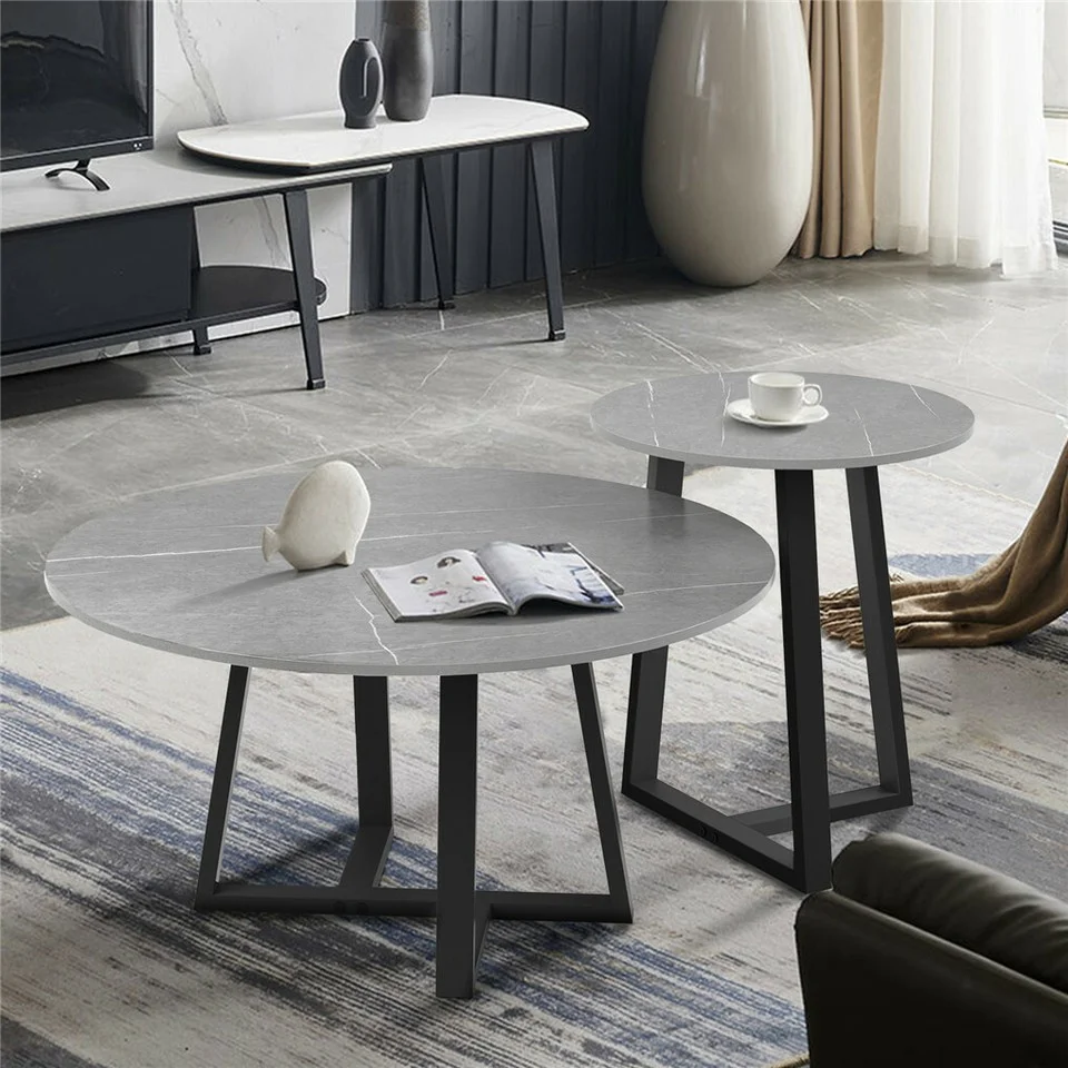 Strong Structures This modern design end tables include a large table and a small table. They are made of sintered stone table top + black painted metal iron support base, marble effect and beautiful, easy to clean, more stable no wobble, fits nicely in the empty corner of your home