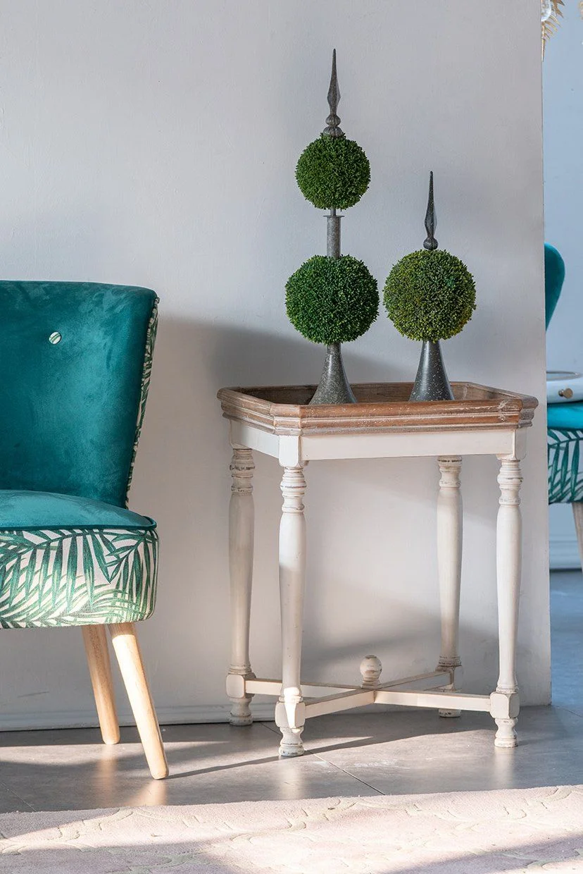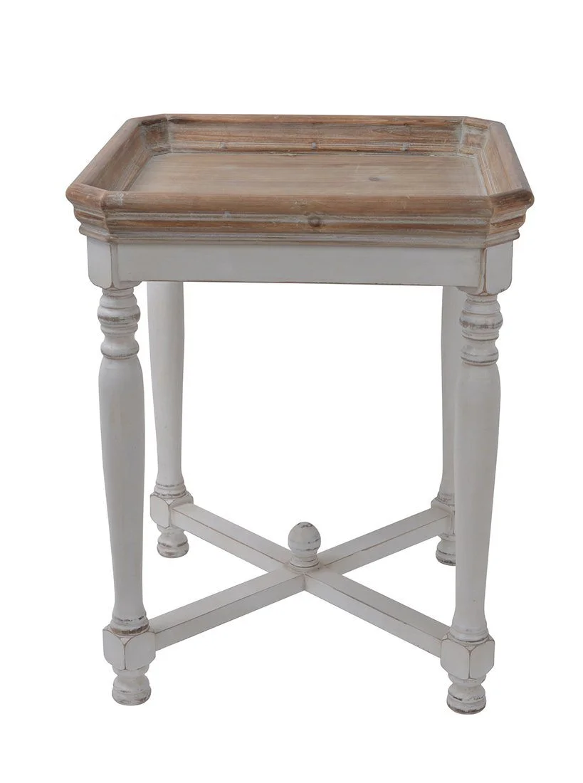 This beautifully hand crafted side table features beautiful details from top to bottom. Made with reclaimed hardwood our Shabby Square Side Table features a deep tabletop for easy nesting of objects. In contrast, its legs have been washed in white, shabby chic style. This creates a beautiful look with a side table that could find a home in not only shabby chic interiors but French provincial style spaces and beachside homes