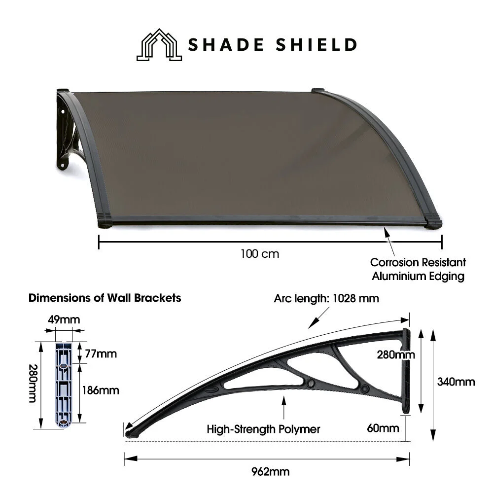This DIY-friendly design features a sleek, black, high-strength polymer side brackets with reinforced aluminium edging to endure rough weather. Perfect for patios, balconies, doorways, windows, or shielding outdoor equipment like hot water systems and power junction boxes, it blends practicality with a modern aesthetic.