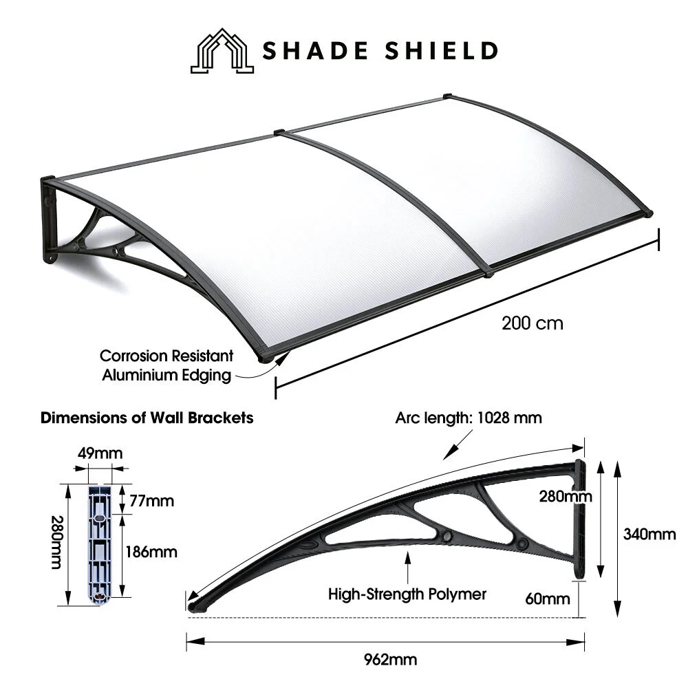 This DIY-friendly design features a sleek, black, high-strength polymer side brackets with reinforced aluminium edging to endure rough weather. Perfect for patios, balconies, doorways, windows, or shielding outdoor equipment like hot water systems and power junction boxes, it blends practicality with a modern aesthetic.