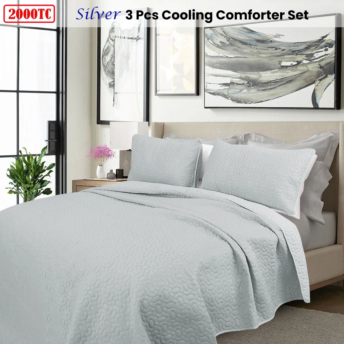 Soft feel and enhanced strength with cashmere touch feel mink cover with microfiber fill. Bring a new touch to your bedroom decor with this 2000TC Silver Cooling Embroidered 3 Pcs Comforter Set by Shangri La. Made from soft, durable, and shrinkage-free microfiber yarns.