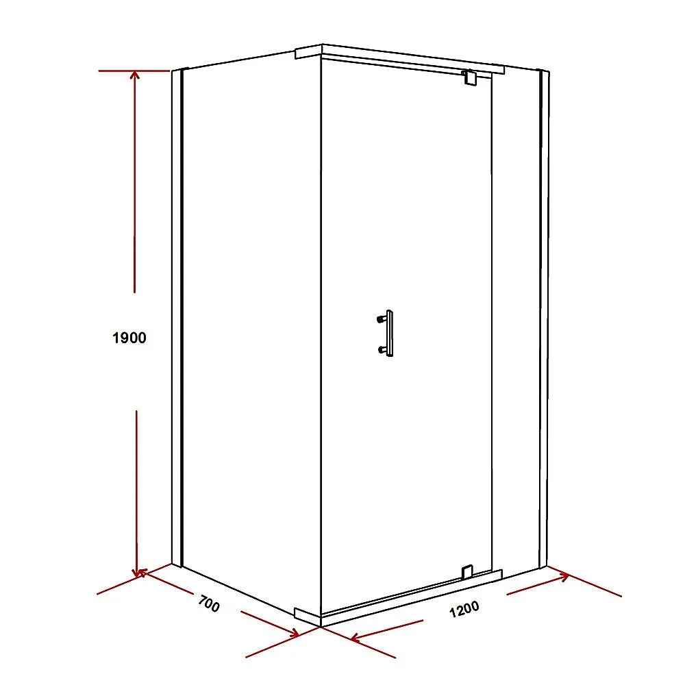 Dimensions: 1200 x 700 x 1900mm shower screen