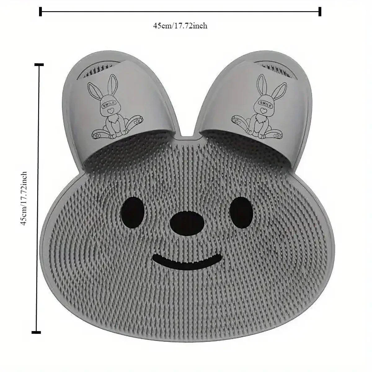 This adorable silicone foot scrubber mat, designed in a playful rabbit shape, makes bath time both fun and functional.The scrubber features soft bristles and a comfortable texture, perfect for exfoliating and massaging your feet as you shower.The mat comes with multiple suction cups to hold it securely in place, providing a safe and slip-resistant surface.Crafted from high-quality, skin-friendly silicone, this mat is easy to clean, durable, and gentle on sensitive skin.