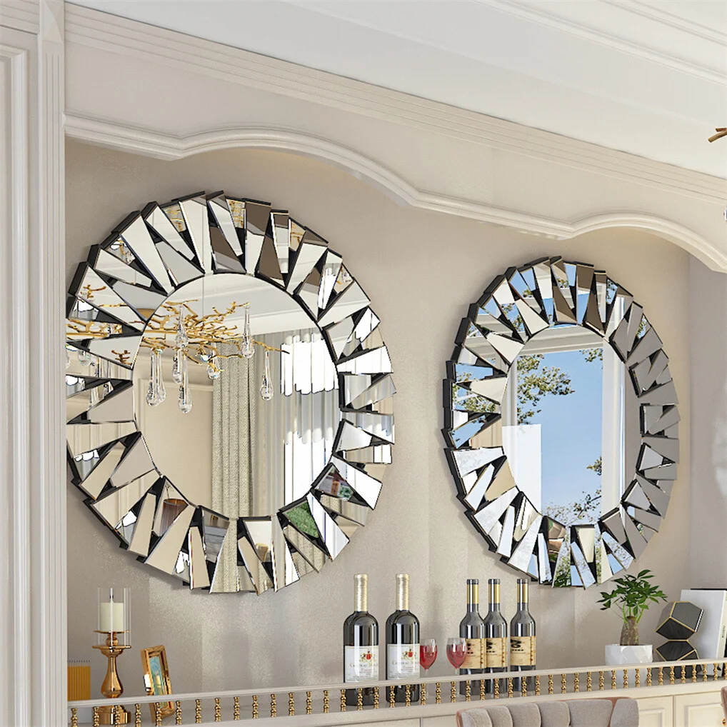 Stereoscopic Irregular Frame: The edges of the mirror have many little irregular and clear glass which are cool to bring your wall color into the mirror. Because they are stereoscopic, which can create a unique style. Especially, with natural light or side lights on them some glass glisten.