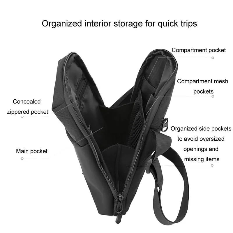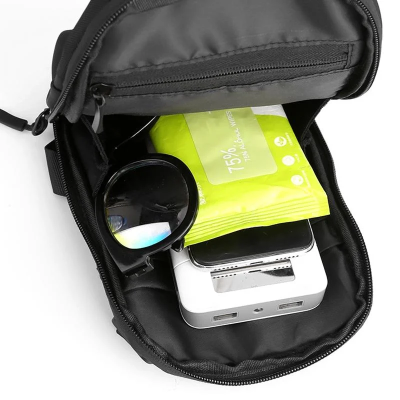 Compact Shoulder Sling USB Crossbody Chest Bag For Men - Black Gold