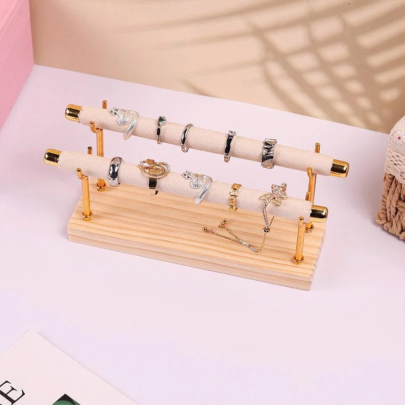 This elegant jewellery organiser is designed to help you showcase and organise your jewellery collection with style. Made from durable solid wood, the rack features velvet-covered bars that provide a soft, protective surface for your rings, bracelets, and watches. With a minimalist design and gold-tone accents, it complements any decor and suits both home and professional environments. Available in single and double-tier options, this display rack helps you efficiently store and display your favourite pieces while keeping them safe from scratches or tangling.