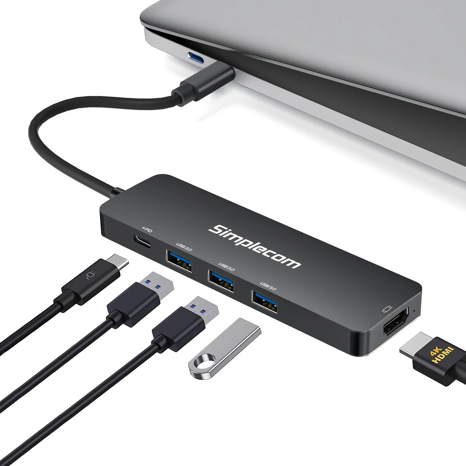 This USB-C multiport docking station is designed to extend the connectivity for modern laptops with multifunctional USB-C interface. It turns a single USB-C port into 5 ports, including three SuperSpeed USB 3.0 ports, HDMI display output, and one USB-C PD charging port. The HDMI port supports transmitting video with resolution up to 4K@30Hz, and the 3-Port USB 3.0 hub provides up to 5Gbps data transfer rate. The USB-C PD port can charge your connected laptop while other ports are working, supporting up to 100W charging via Power Delivery.