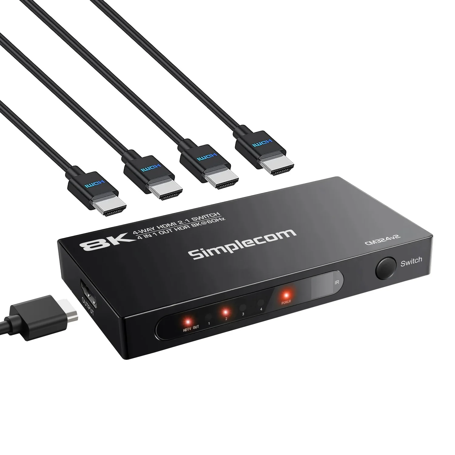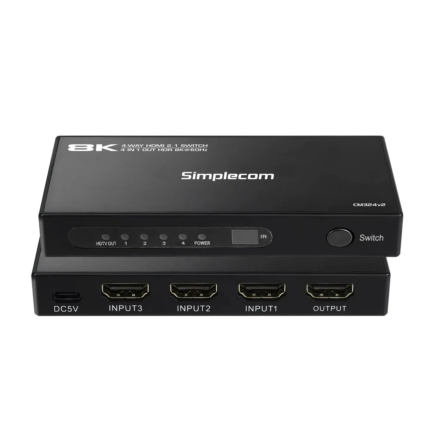 Simplecom CM324v2 4-Port HDMI 2.1 Switch 4 IN 1 OUT Splitter HDCP 2.3 8K@60Hz