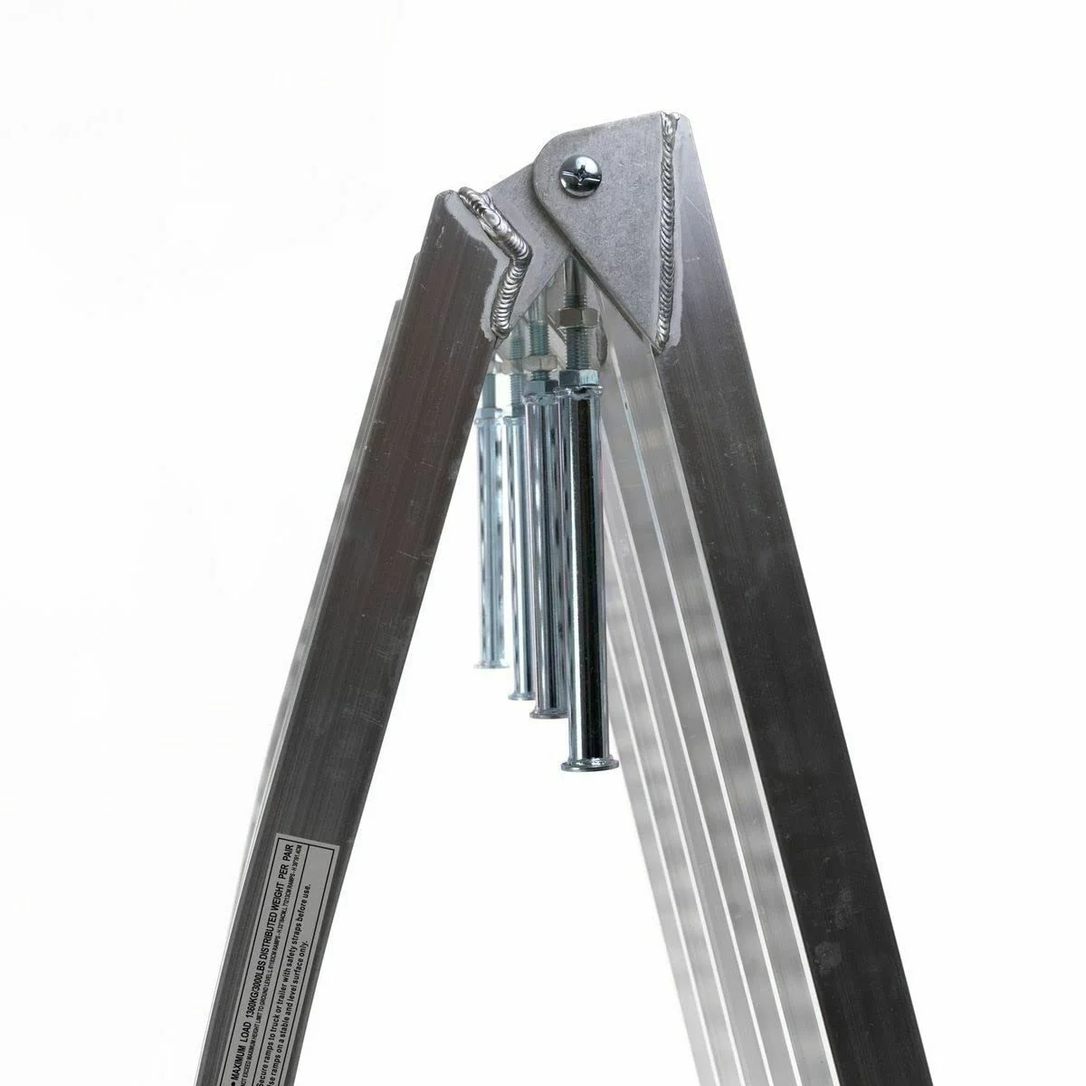 The folding ramp has a load capacity of up to 1360 kgs per pair and 680 kg per ramp. It can be used to load vehicles like bikes, ATVs, motorcycles, ride-on lawnmowers, and more. The single loading ramps can be used for other purposes like car servicing, car stands, RV ramps, etc.