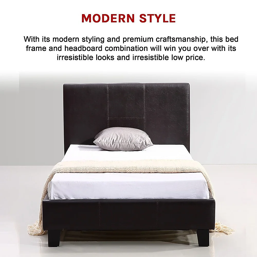 Give your bedroom a splash of color and complete your decor with our Palermo Single Bed Frame with PU Leather in brown. Designed for a standard Australian sized single mattress (mattress not included), this complete bed frame and headboard is a great addition to any bedroom.