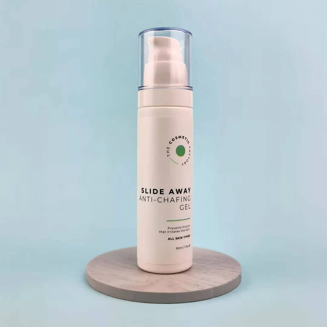 ABOUT: This light, antibacterial, non-greasy formula soothes and repairs irritated skin while offering water-resistant comfort against friction. SLIDE AWAY Anti-chafing Gel allows your skin to breathe while providing long-lasting protection against the effects of chafing. RECOMMENDED FOR: All skin types.