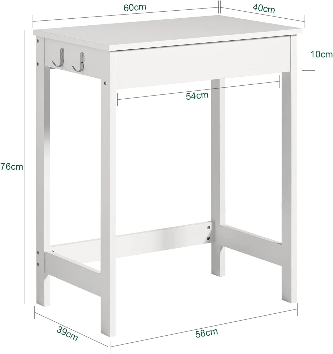 Small White Desk with Drawer Hooks