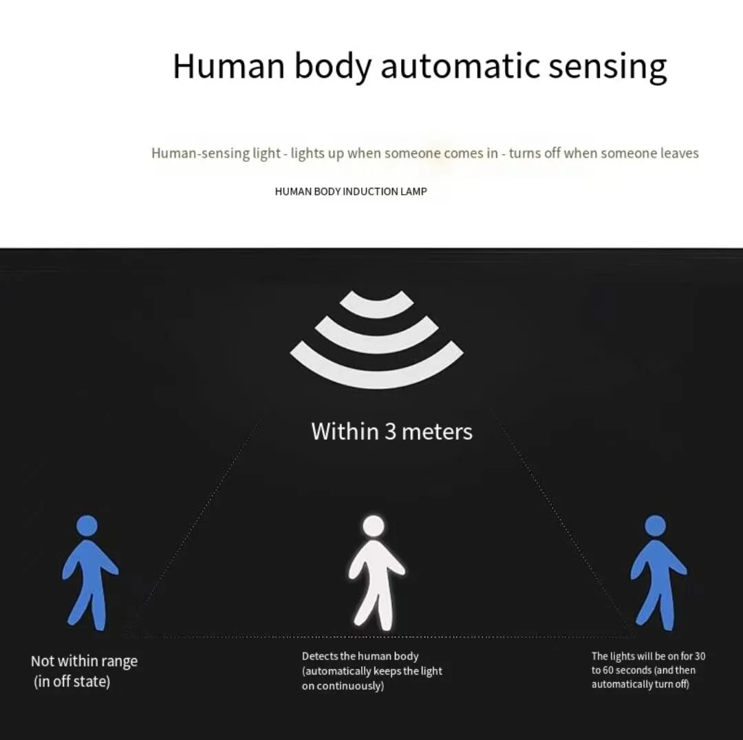 ✔ Intelligent light sense + human body sense--automatic lighting when moving is detected in dark environment