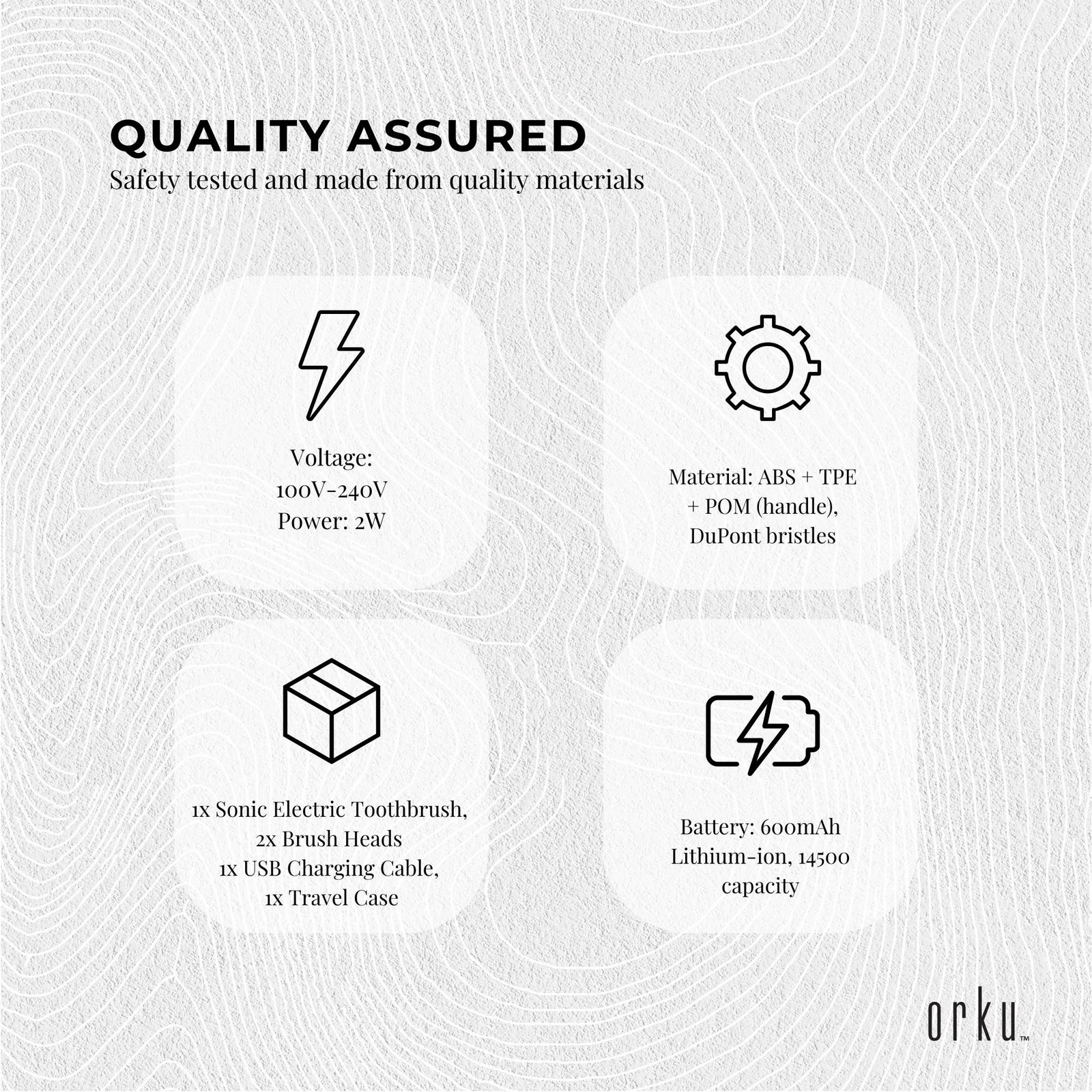 Charging within 4 hrs via USB and can last up to 60 days, this waterproof electric toothbrush offers 5 brushing modes for varying oral care needs and 100 % Du-Pont brush bristles.