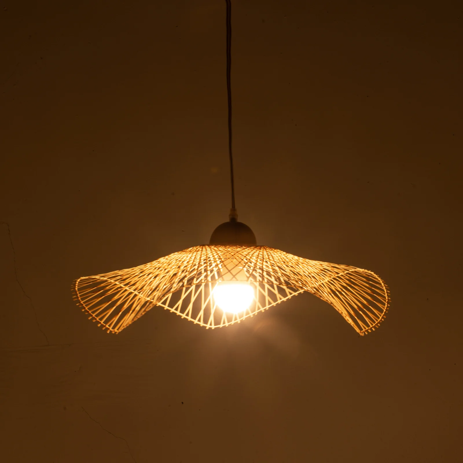 Enhance your home with the elegant Sophia Natural Hand-Woven Bamboo Wave Pendant Lamp. This beautiful and contemporary piece serves as an attractive and stylish accessory, perfectly suited for your lounge room, kitchen, or bedroom. Its unique modern style and size make it an exceptional ceiling lamp, ideal for minimalist and contemporary decors. The lamp emits a soft, inviting light that beautifully illuminates your bedroom, living room, den, kitchen, or office, creating a warm and welcoming atmosphere.