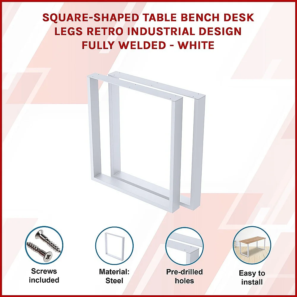 Rectangular-Shaped Table Bench Desk Legs Retro Industrial Design Fully Welded - White