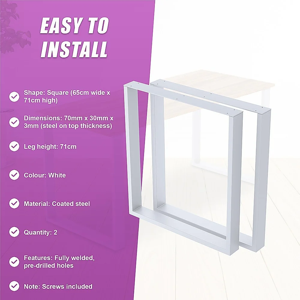 Crafted from white-coated sturdy steel, these table legs can hold tables up to 300kg. Their neutral colour blends well in any room.