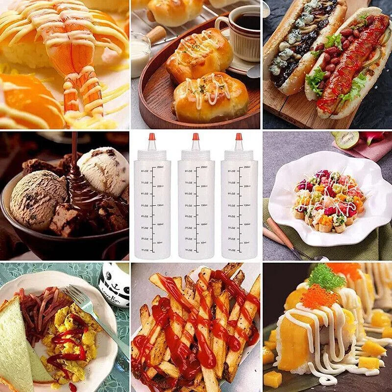 The 6pcs 250/500ml Sauce Bottle Squeeze Crafts Condiment Dispenser Hot is a set of six high-quality condiment bottles that are perfect for storing and dispensing your favorite sauces and condiments. These bottles are made from durable and reliable materials, which ensures that they will last for a long time. Each bottle features a convenient squeeze design, which makes it easy to dispense just the right amount of sauce or condiment. With a capacity of 250/500ml, these bottles are perfect for use at home or in a commercial setting. Whether you're serving up ketchup, mustard, mayo, or any other type of sauce, these condiment bottles are a must-have in any kitchen or dining area. So why wait? Grab your set of 6pcs 250/500ml Sauce Bottle Squeeze Crafts Condiment Dispenser Hot today and start enjoying your favorite sauces and condiments in style!