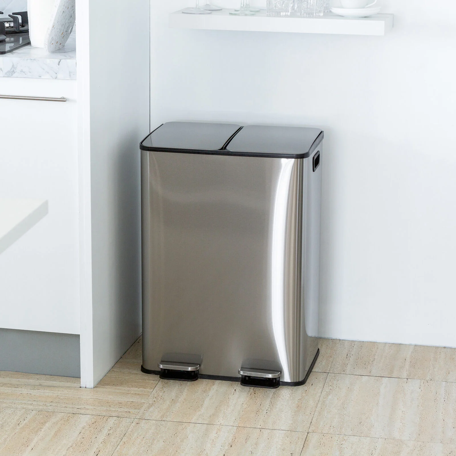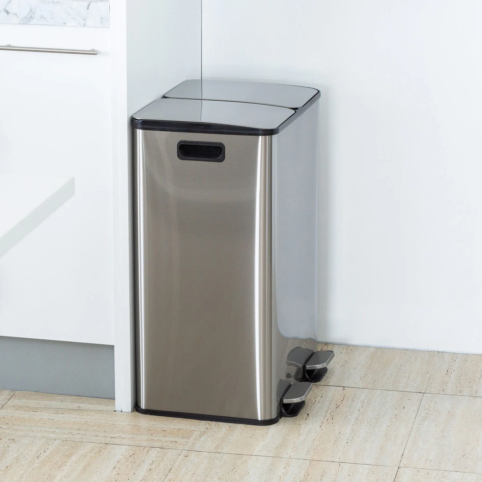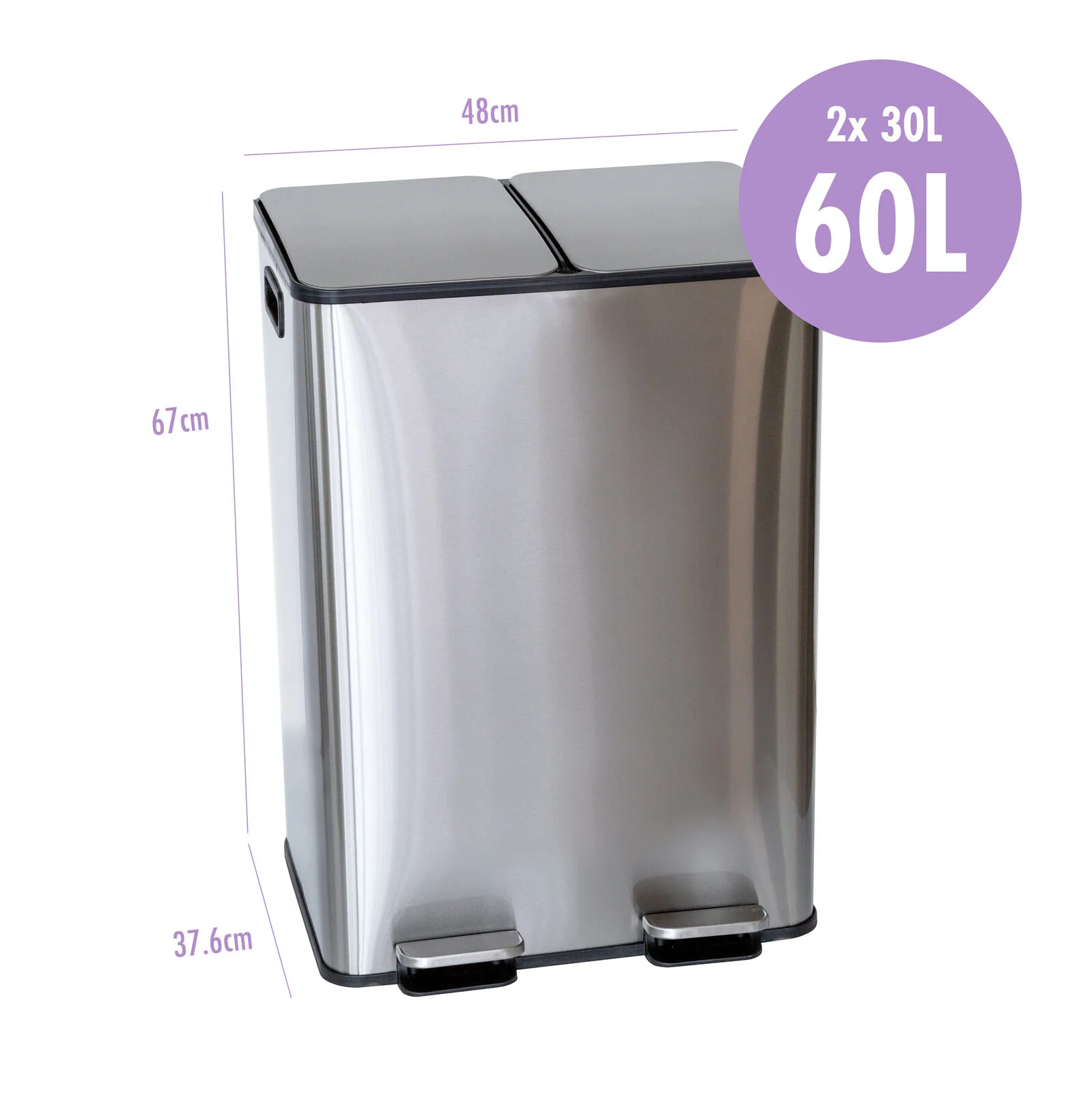 The Healthy Choice 2x 30L Stainless Steel Dual Compartment Pedal Rubbish Bin makes waste separation simple and hygienic. Featuring two 30L compartments with hands-free pedal operation, it allows easy sorting of rubbish and recycling. The soft-close lid ensures quiet use, while the fingerprint-resistant stainless steel body keeps it looking clean and modern. Removable inner buckets make emptying and cleaning effortless, and the built-in carbon filter holder helps reduce unwanted odours—ideal for busy kitchens and households.