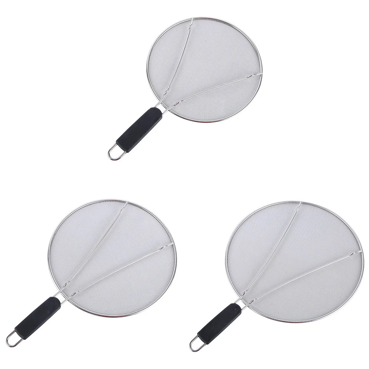 Keep your stovetop cleaner and safer with this stainless steel mesh splatter screen.Available in 25cm, 29cm, and 33cm sizes, it fits most standard frying pans to help prevent oil splashes while cooking.The fine mesh allows steam to escape without letting hot grease escape, and the black heat-resistant handle ensures safe use.Ideal for frying, sautéing, and searing in any kitchen.