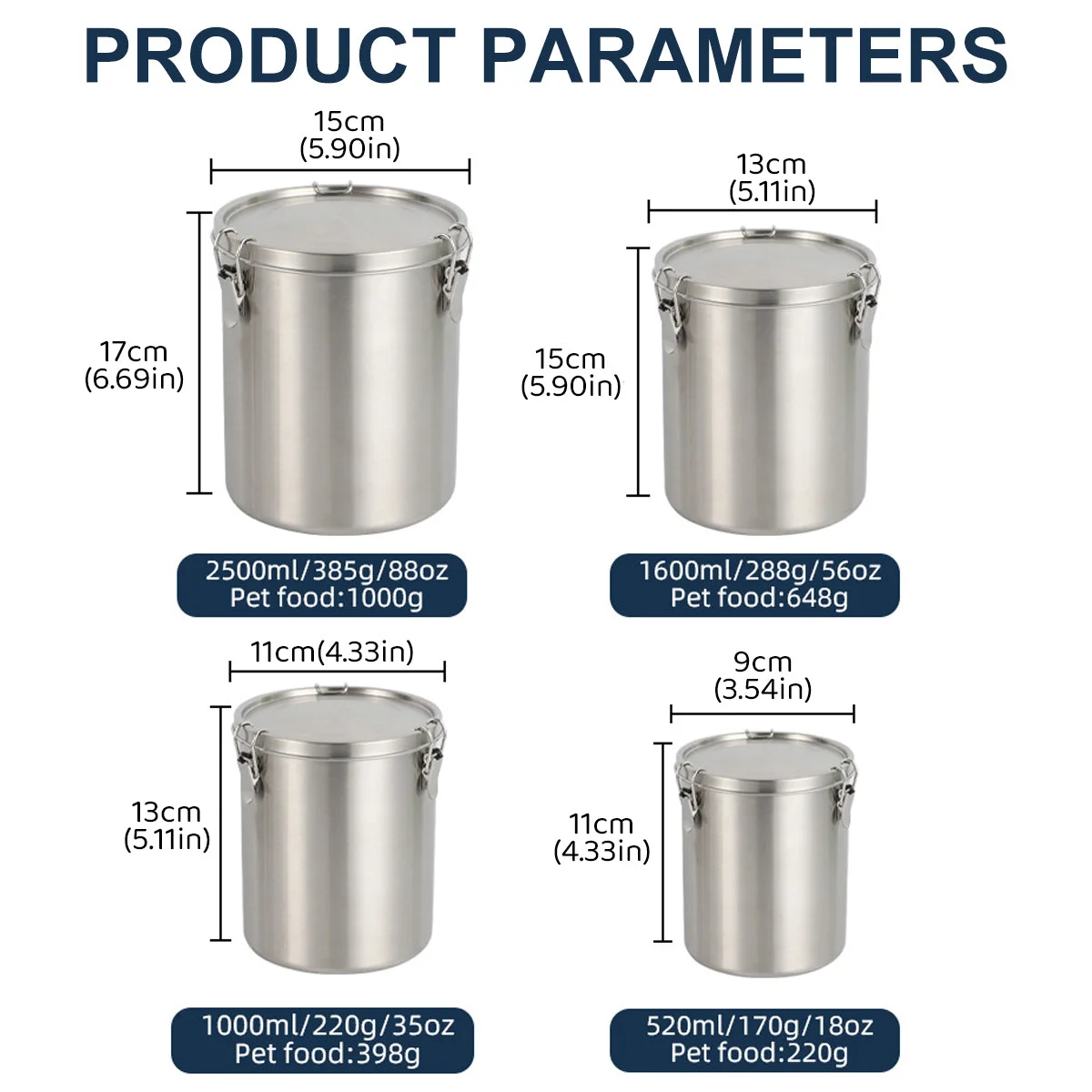 1 × Stainless Steel Pet Food Storage Bucket (size as selected)