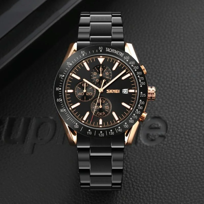Waterproof Quartz Watch with Stainless Steel Buckle for Men - Gold And Silver