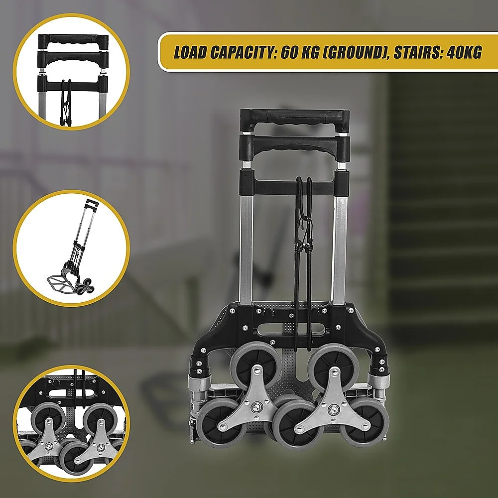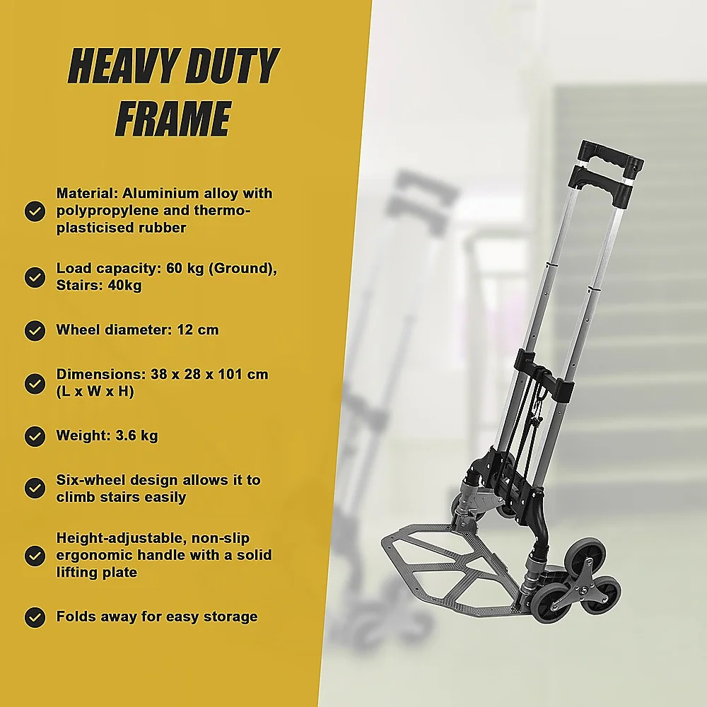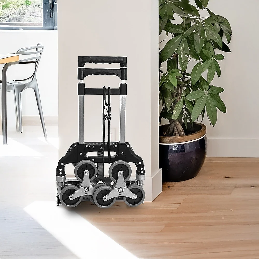 Crafted from only the highest-grade aluminium alloy, this trolley resists corrosion, making it perfect for use even under inclement weather conditions. Take a load off your shoulders and back. Purchase your heavy-duty stair-climbing trolley today.