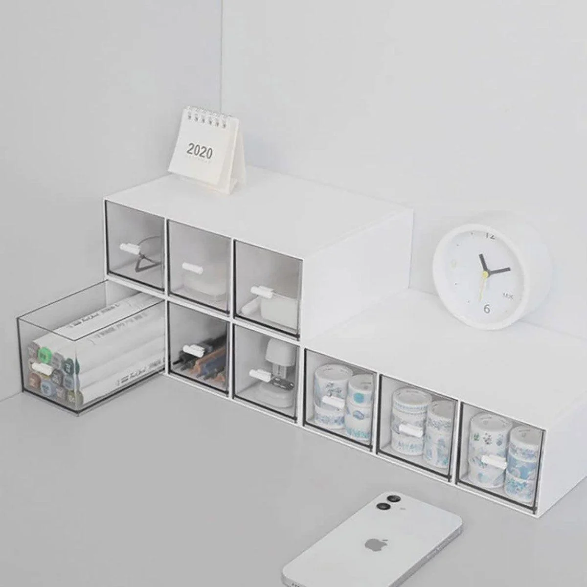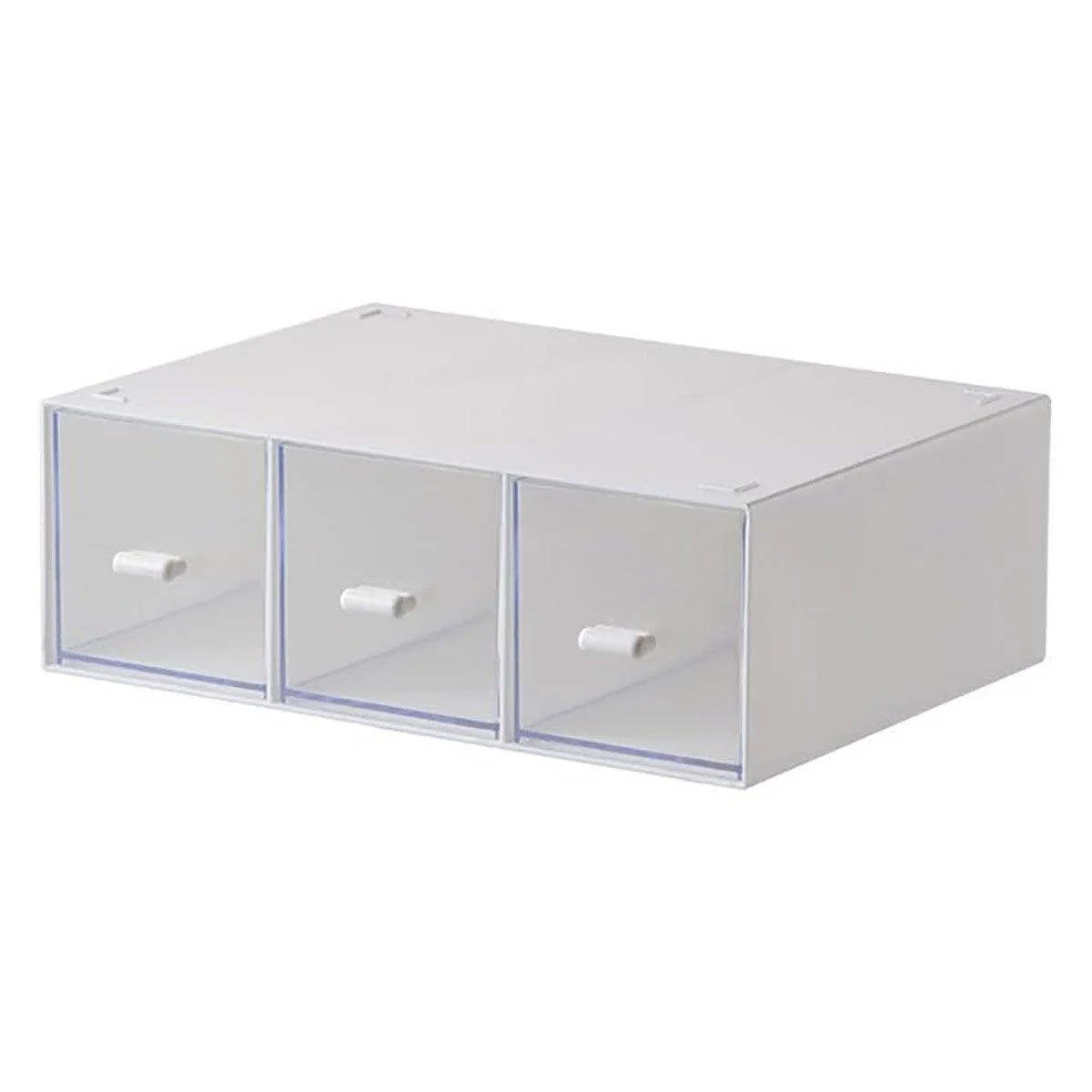 Organize your essentials with this versatile storage box featuring three transparent drawers.Perfect for keeping items such as coffee, tea, sugar, jewellery, and office supplies neatly stored on your desktop. The transparent design allows for easy visibility, ensuring quick access to your items without the need to open each drawer.Ideal for both home and office use, this storage box is a practical solution to decluttering your space.