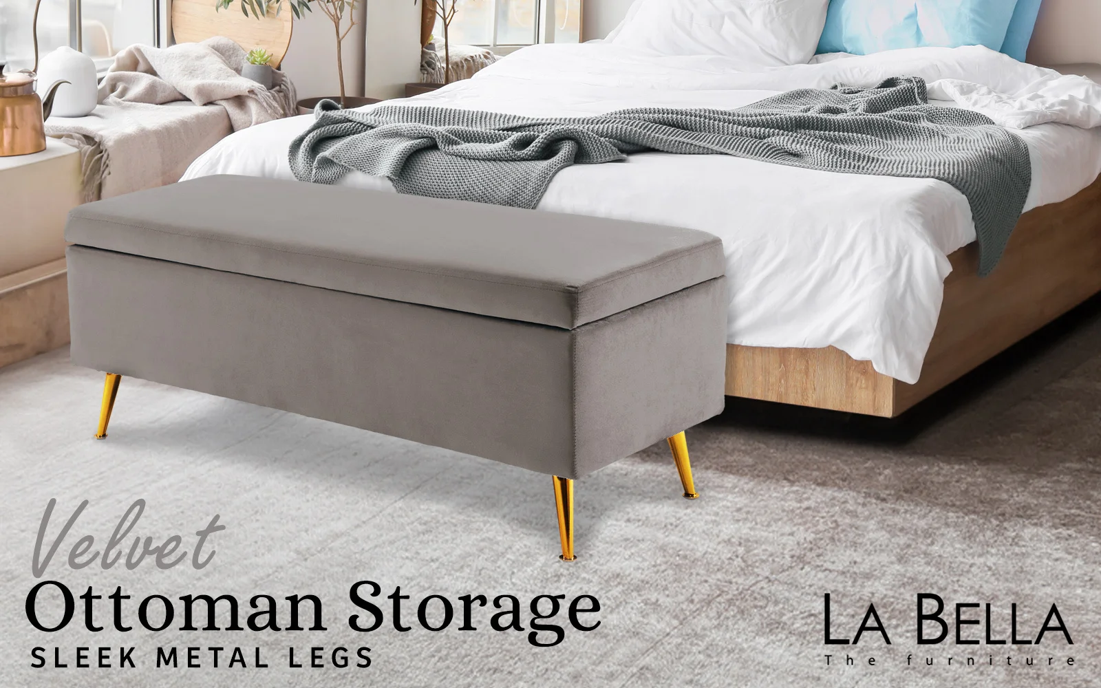La Bella Storage Ottoman Bench Seat 110cm Chest Couch Stool Velvet - Grey