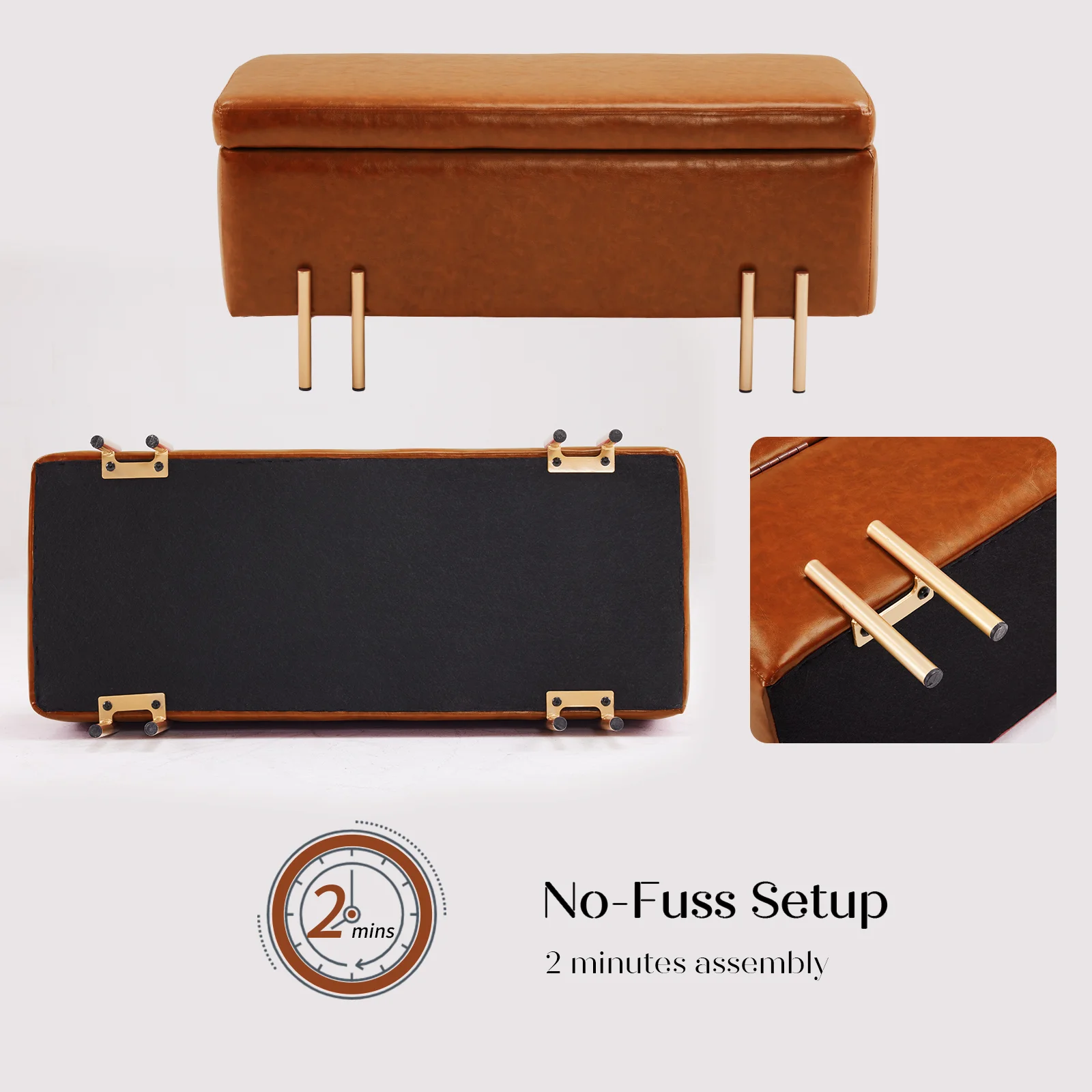 Supported by sleek metal legs, the ottoman brings contemporary charm with stability and durability. Lift the lid to reveal ample storage space for blankets, pillows, and more, effortlessly keeping your living area clutter-free.