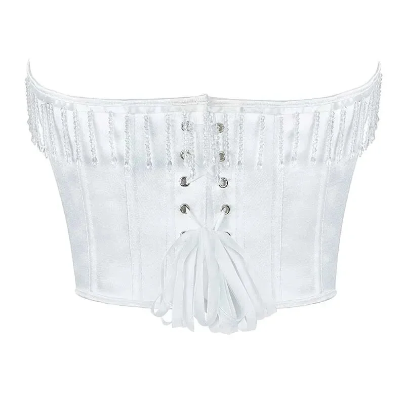 Oil Painting Strapless Overbust Corset Top Front 6 Busk Back Lace Renaissance Style For Women - Blue - S
