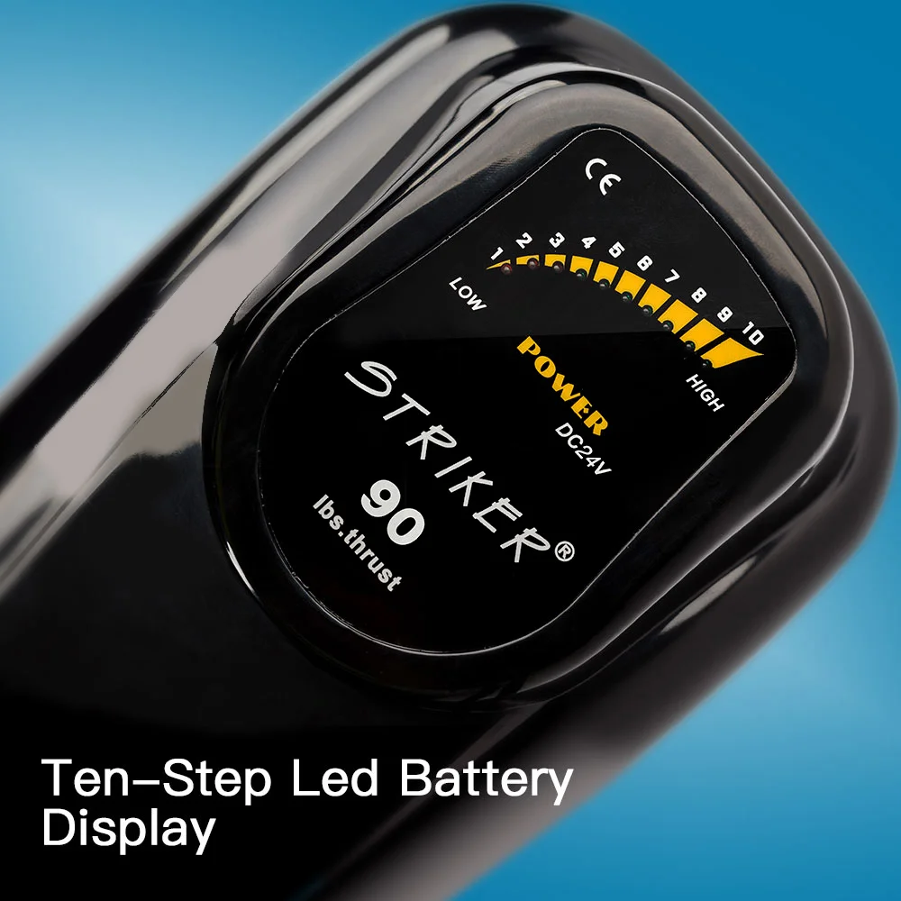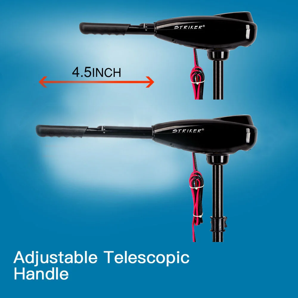 With super-low power consumption, the Genuine Striker gets the most out of your 24V battery. And thanks to its clear LED display, you will always be in control of the power. Suitable for small water crafts such as inflatable boats, canoes and aluminum fishing boats, refer to the below graph for boat size.Your Genuine Striker employs a CAD-designed triple-blade propeller, giving you performance far superior to other blade designs whilst also keeping the weeds away. Simply twist the handle and sneak up on the fish at the optimal speed. With five forward speeds and three reverse speeds, you'll make the right approach every time.