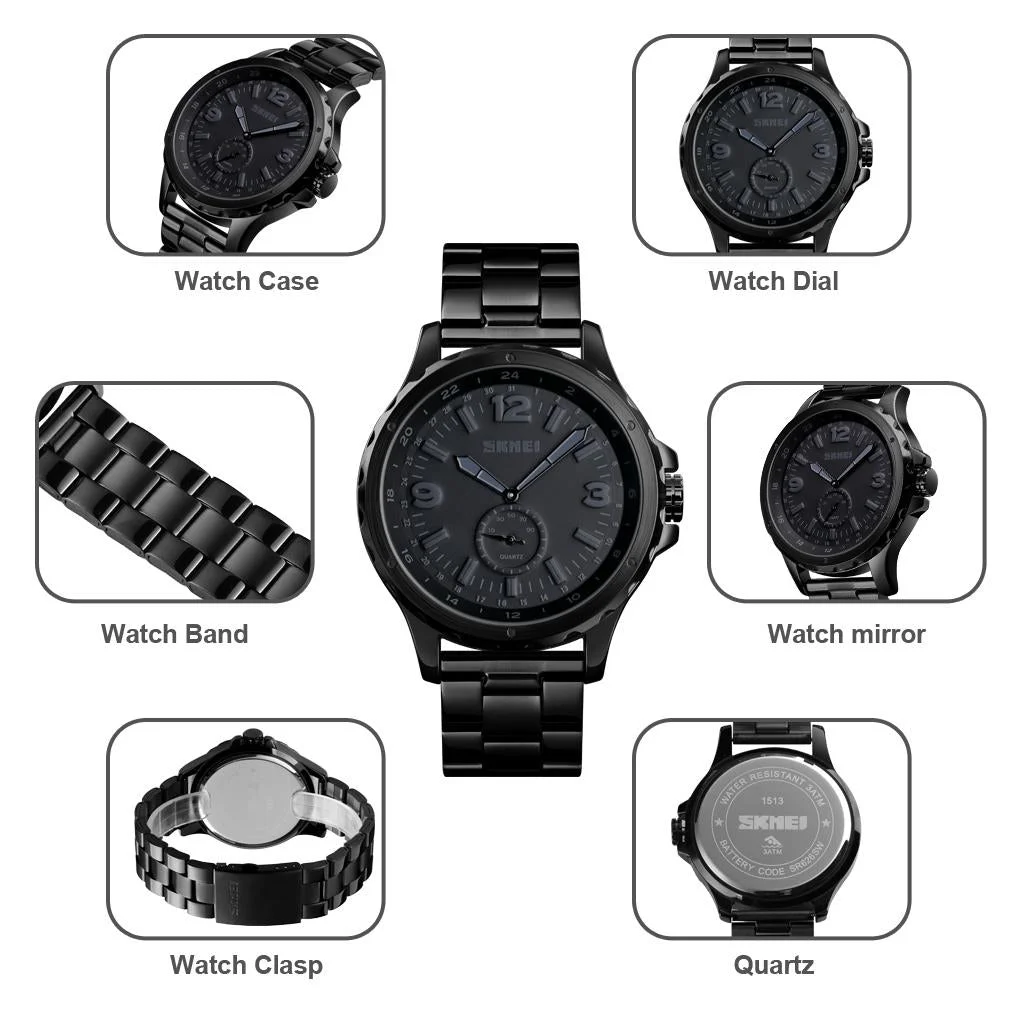 Stylish Waterproof Gold Quartz Watch for Men - Silver Black