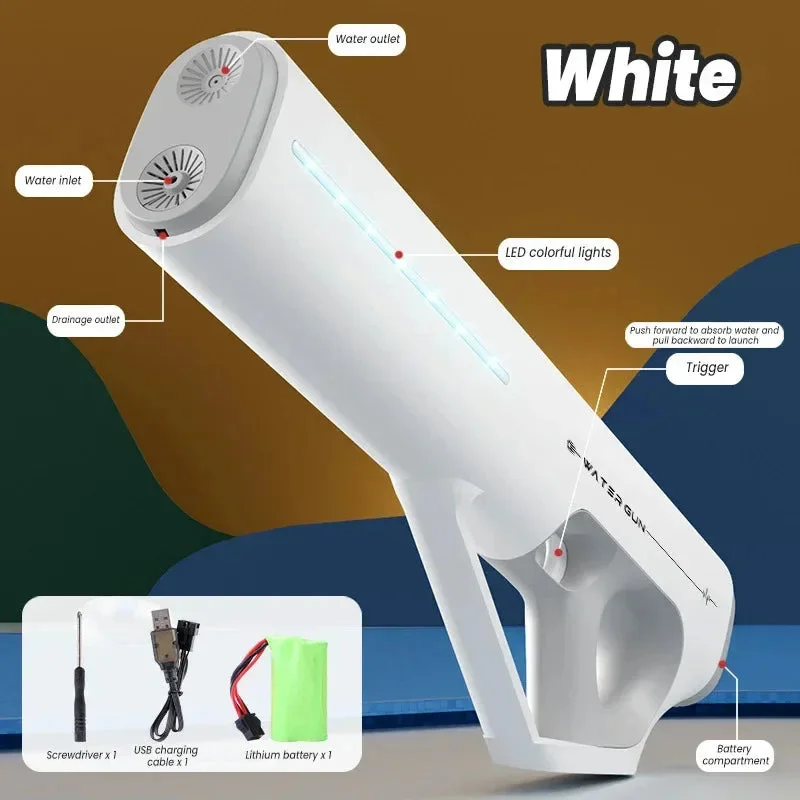 Unleash the ultimate summer fun with the NNEOBA Super Powerful Automatic Water Gun Toy! Featuring LED lights and high-pressure spray action, it's perfect for pool parties and backyard battles.