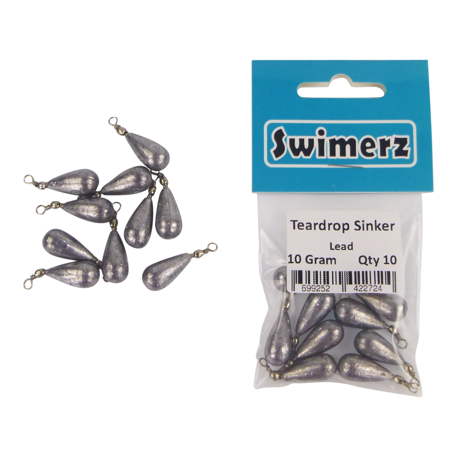 Swimerz 10gm Teardrop Sinker, Lead, 10 pack