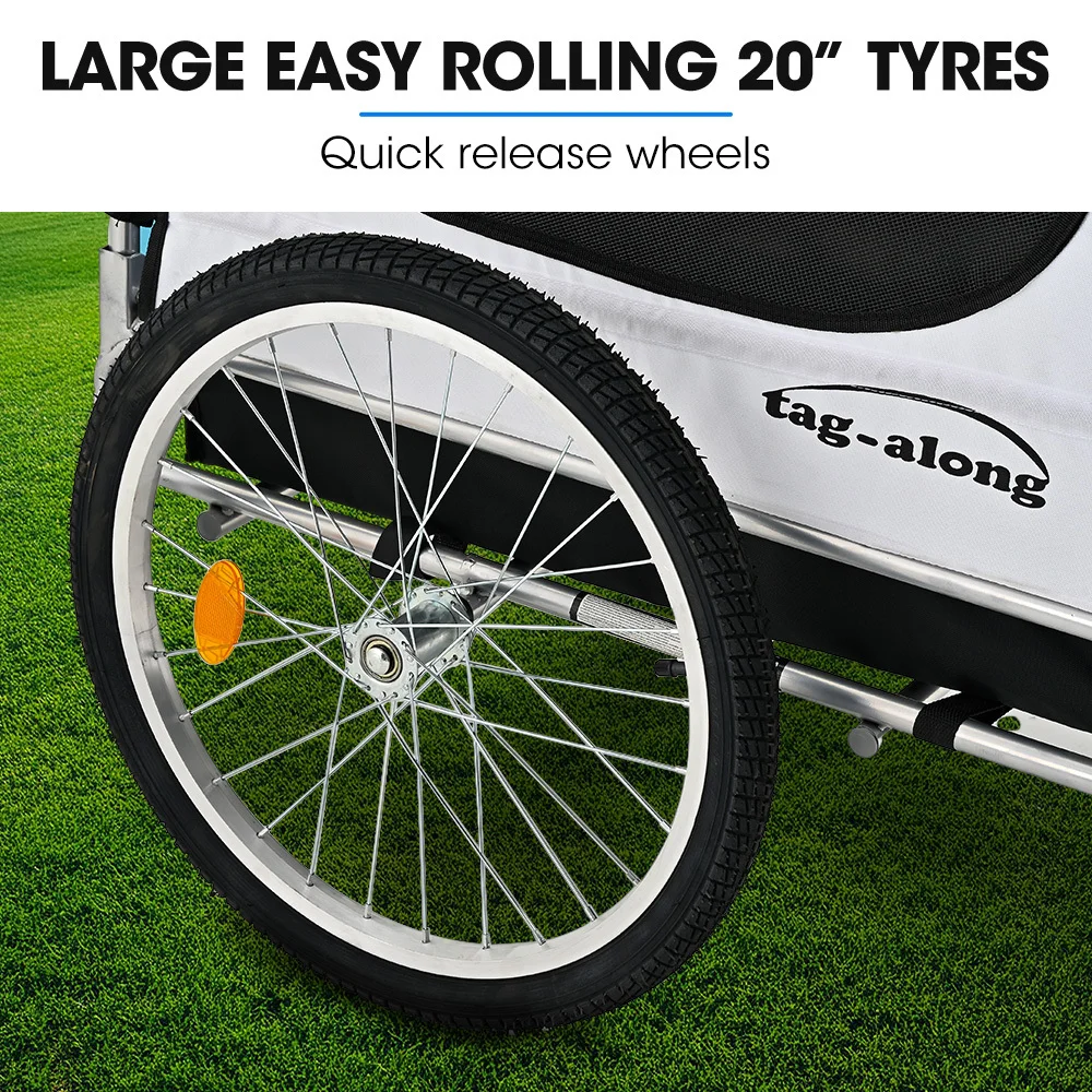 Enjoy the outdoors with the Tag-Along Pet/Cargo Bike Trailer, Designed for both biking and strolling, this trailer is built to comfortably carry your medium-large dog, groceries or other cargo.