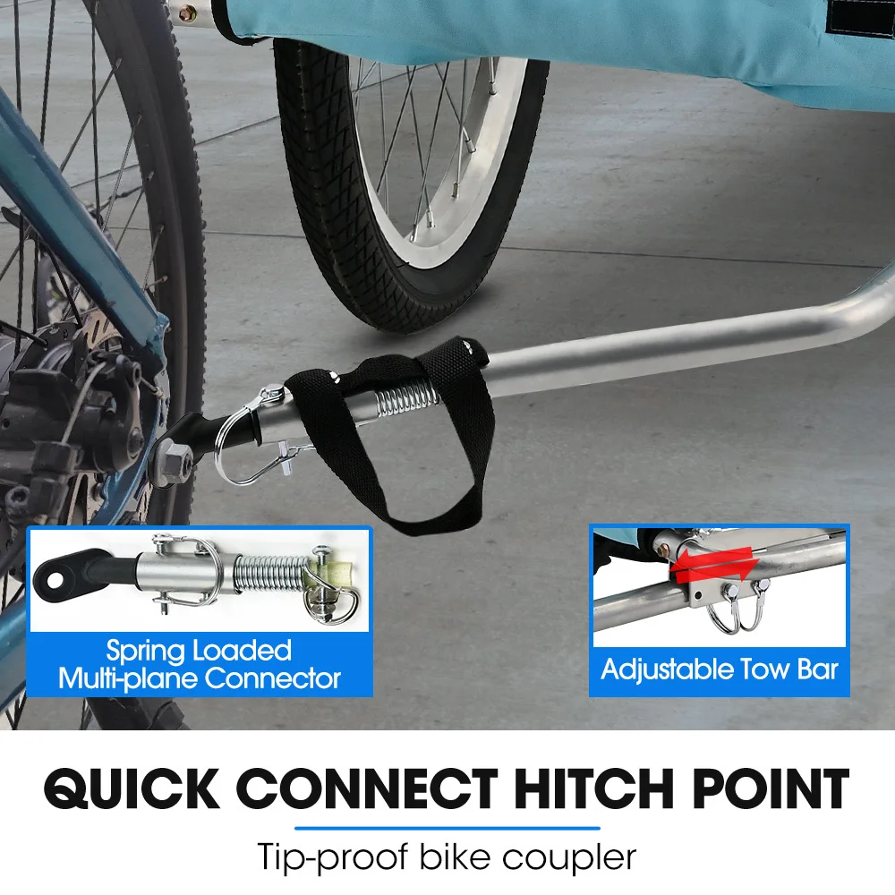 Safety features like the spring-loaded quick-connect system and tip-proof bike coupler prevent unexpected spills. The high-visibility flag, and wheel reflectors help keep both you and your dog visible on the road