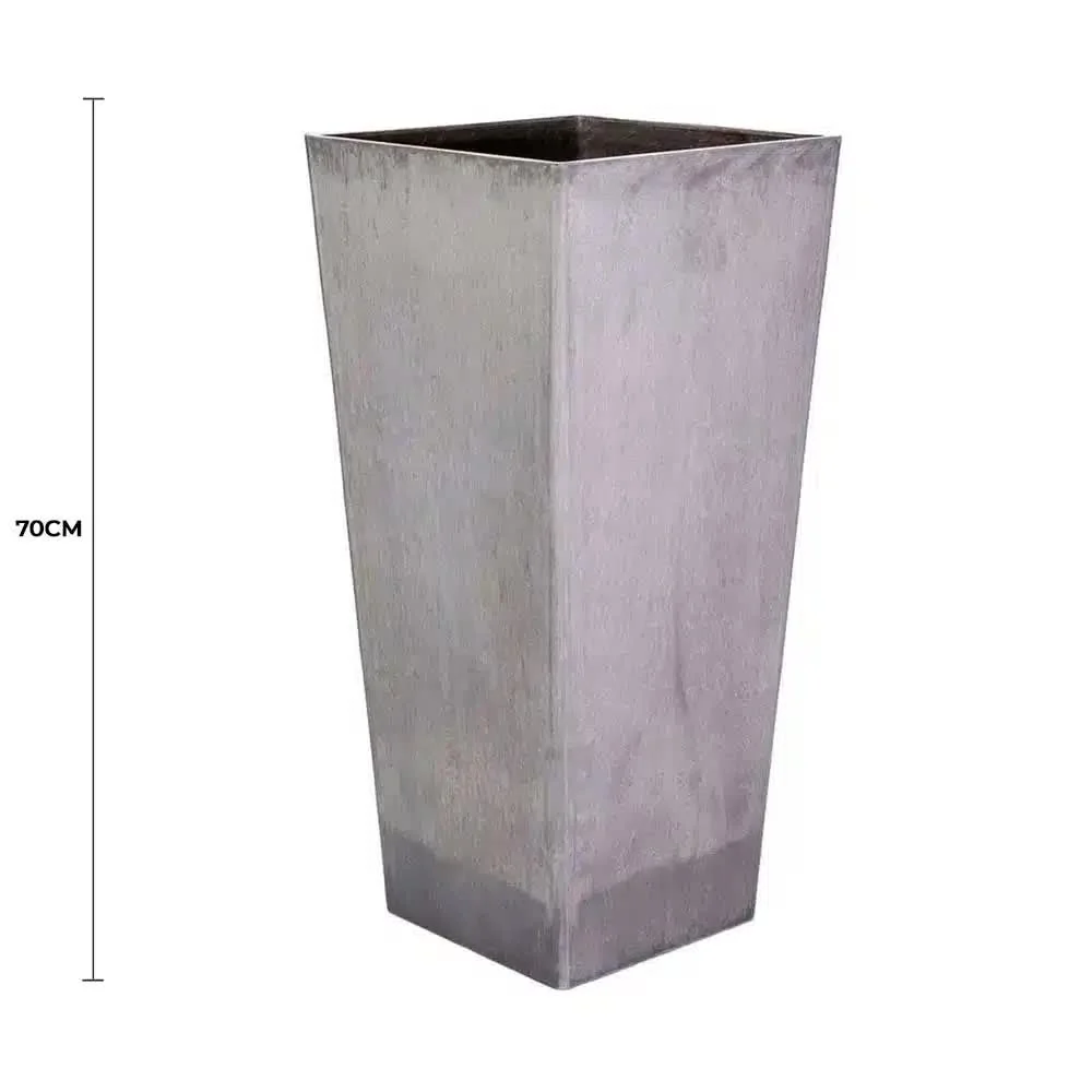 This tapered square planter is made from exceptionally high-quality recycled materials that exceed the performance of most traditional pots and planters. The environmentally friendly tall square planter is the perfect choice for anybody wanting a low-maintenance planter for either indoors or outdoors that will last for years. Finished with a simply stunning polished concrete surface youll absolutely love this super planter. There is a hole with a plug in the base to allow for drainage should you require.