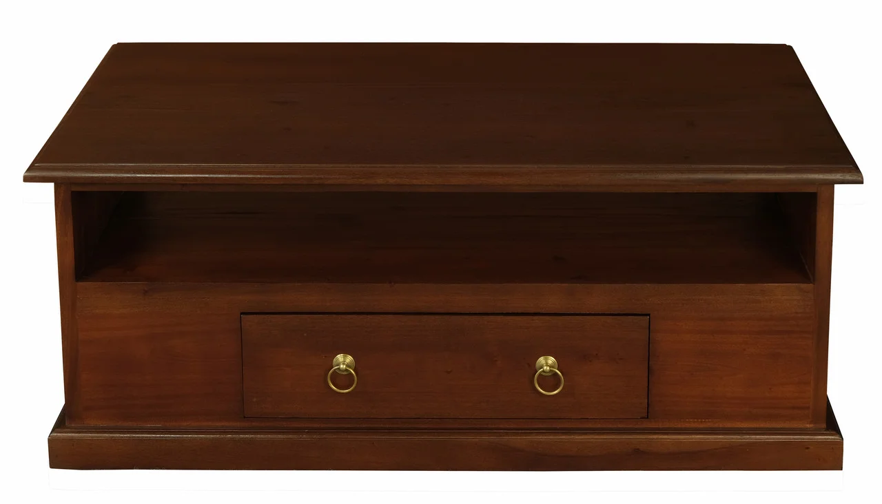 Crafted from solid mahogany timber, the Tasmania Coffee Table brings timeless elegance and durability to your living space. With its rich, natural textures and sturdy construction, it offers ample storage with two drawers and an open shelf, keeping your essentials organized and within reach. Available in three sophisticated finishesChocolate, Light Pecan, and Mahoganythis versatile piece adds a refined touch to any room. Best of all, no assembly is required, allowing you to enjoy it right away.