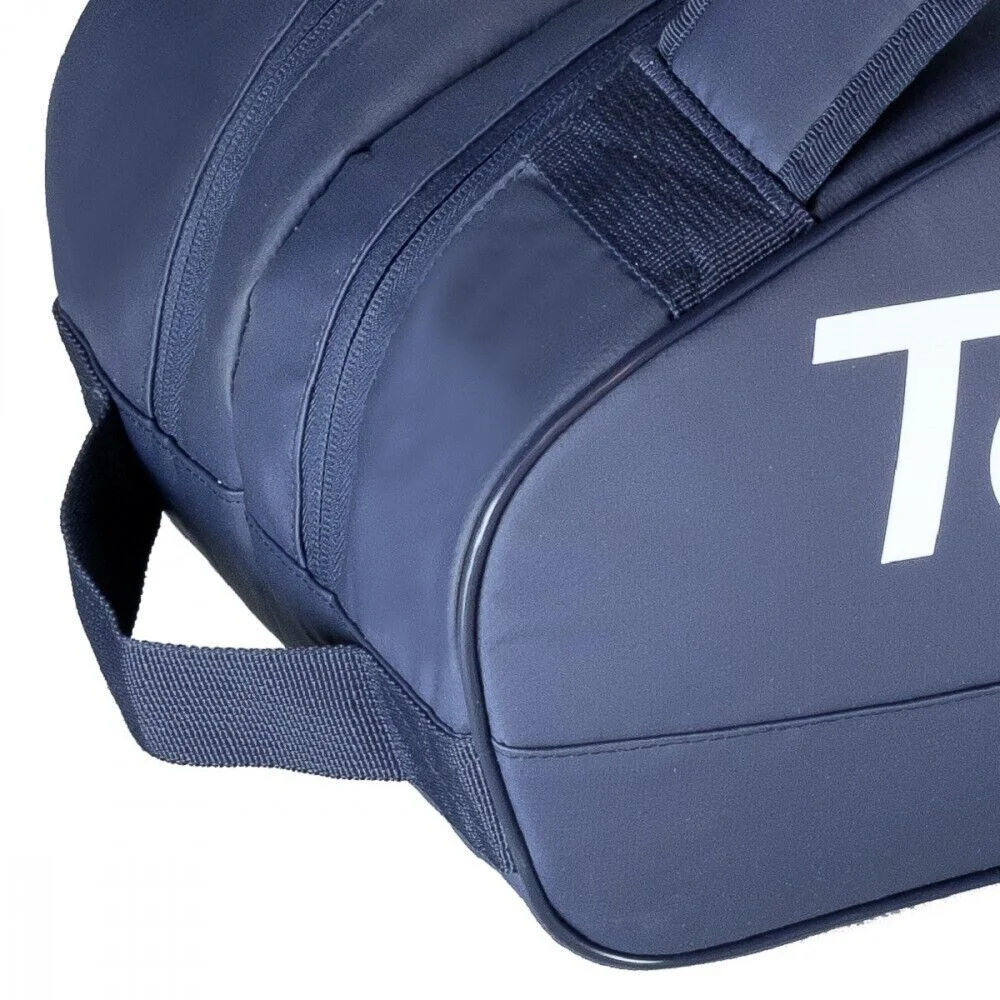 Featuring two compartments, it's designed to accommodate your racquets and gear. While it might be a stretch to fit all nine racquets comfortably, it can easily handle up to six racquets, leaving the other pocket available for items like shoes, towels, or balls.