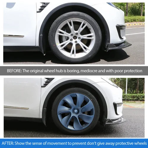 19" Model Y Hubcap: Model Y hub caps are only suitable for tesla model Y with 19" wheels. Turbine design can effectively reduce wind resistance, and makes your car look cooler and more unique.