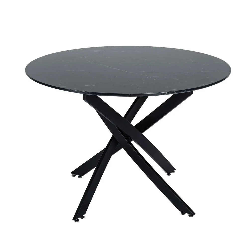 Look! What an attractive set of tables and chairs! This dining chair set includes a marble dining chair and four elegant retro velvet dining chairs, which are low-key and elegant.This table adopts a solid MDF desktop and elegant black marble design with white texture. It is simple and advanced, and can be easily integrated into the dining environment.The legs are made of powder coated steel and are sturdy and durable. The bottom also has a non slip design, which is to protect the floor under the table from scratches and increase stability. The legs of this table are staggered, which is very fashionable. It can add fashion elements to your home.