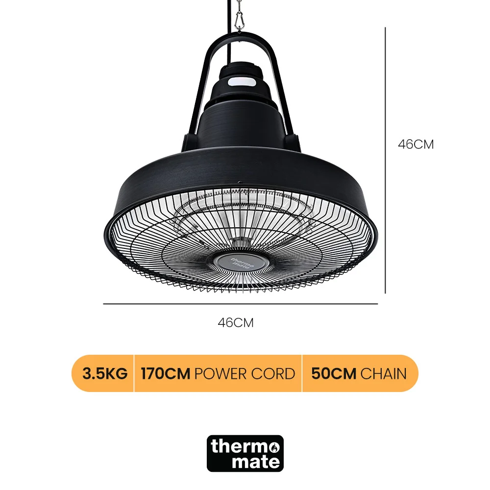 This Thermomate 1500W Hanging Outdoor Heater is crafted for those who value efficiency and style in their outdoor heating solutions. Its industrial-inspired statement styling integrates nicely into a wide range of outdoor décor, and the premium quality ensures suitability for both residential and commercial installations.