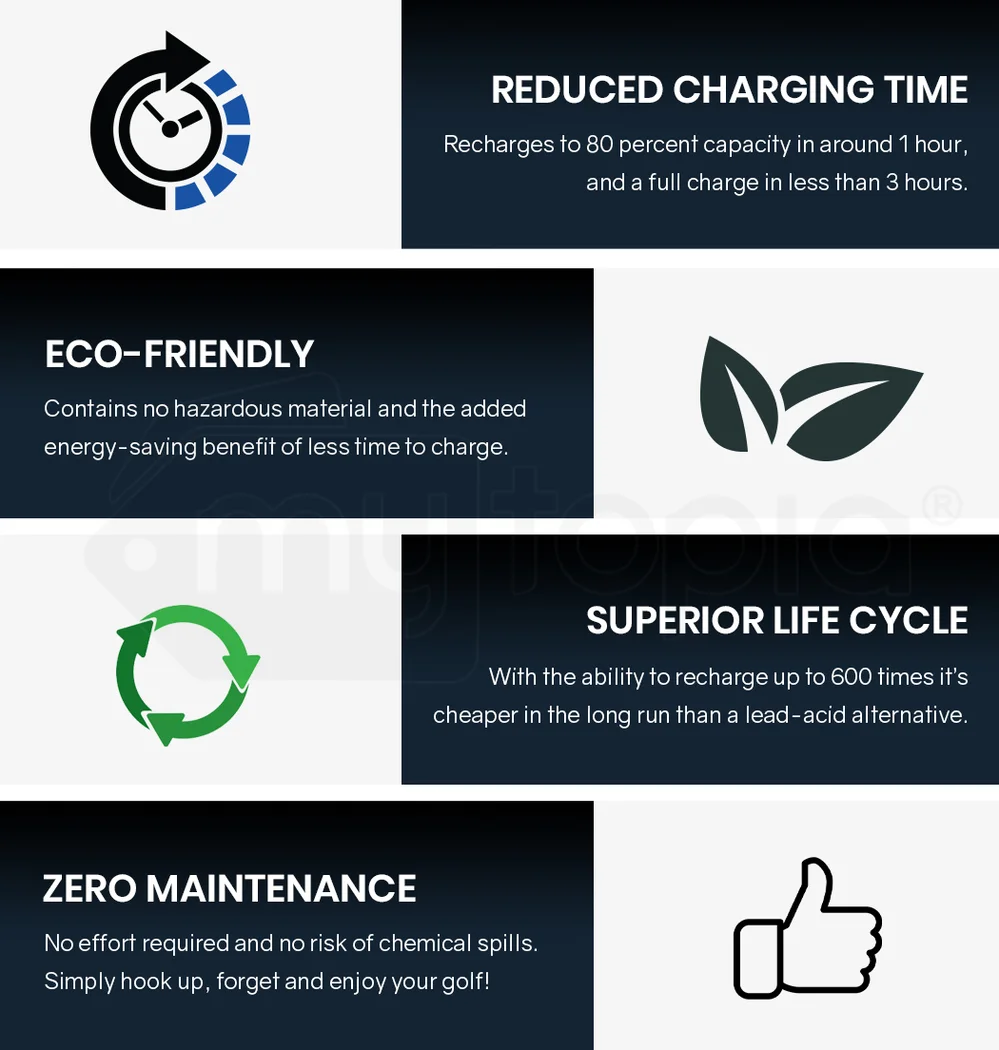 A Thomson 24Ah Lithium-ion battery offers a wide range of benefits that make it the smart choice for your Thomson golf buggy.