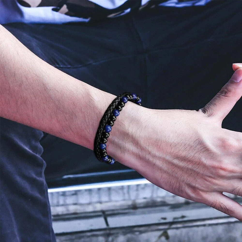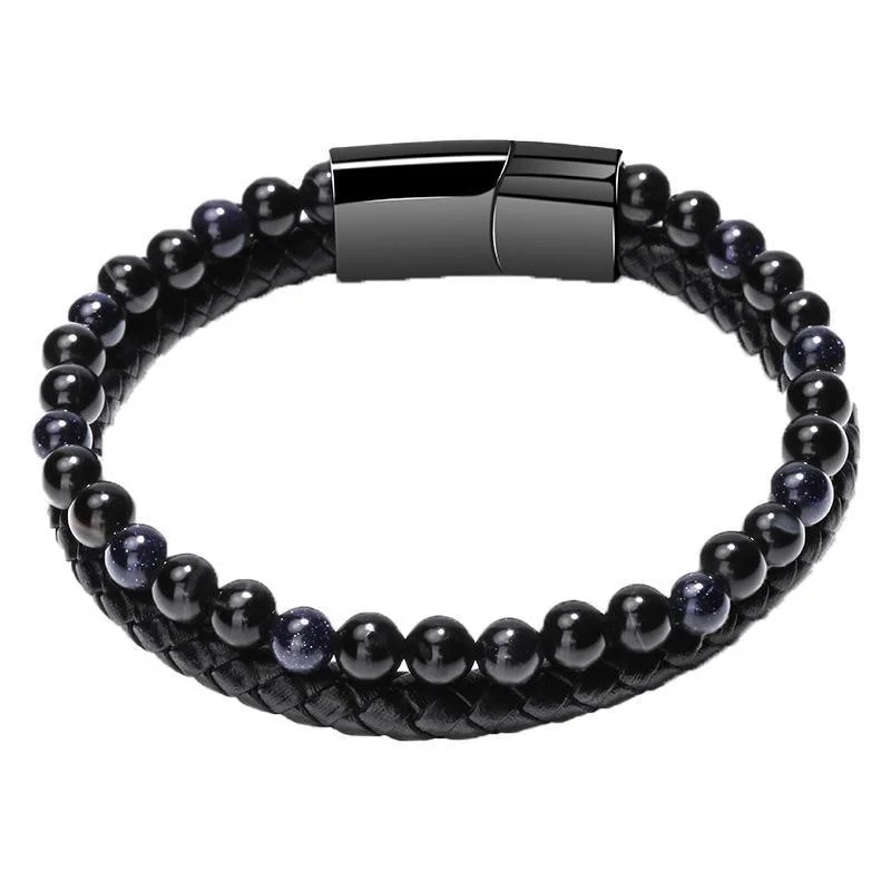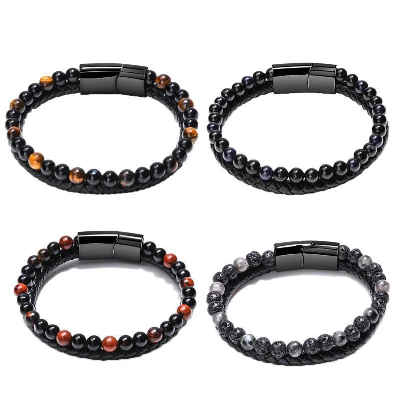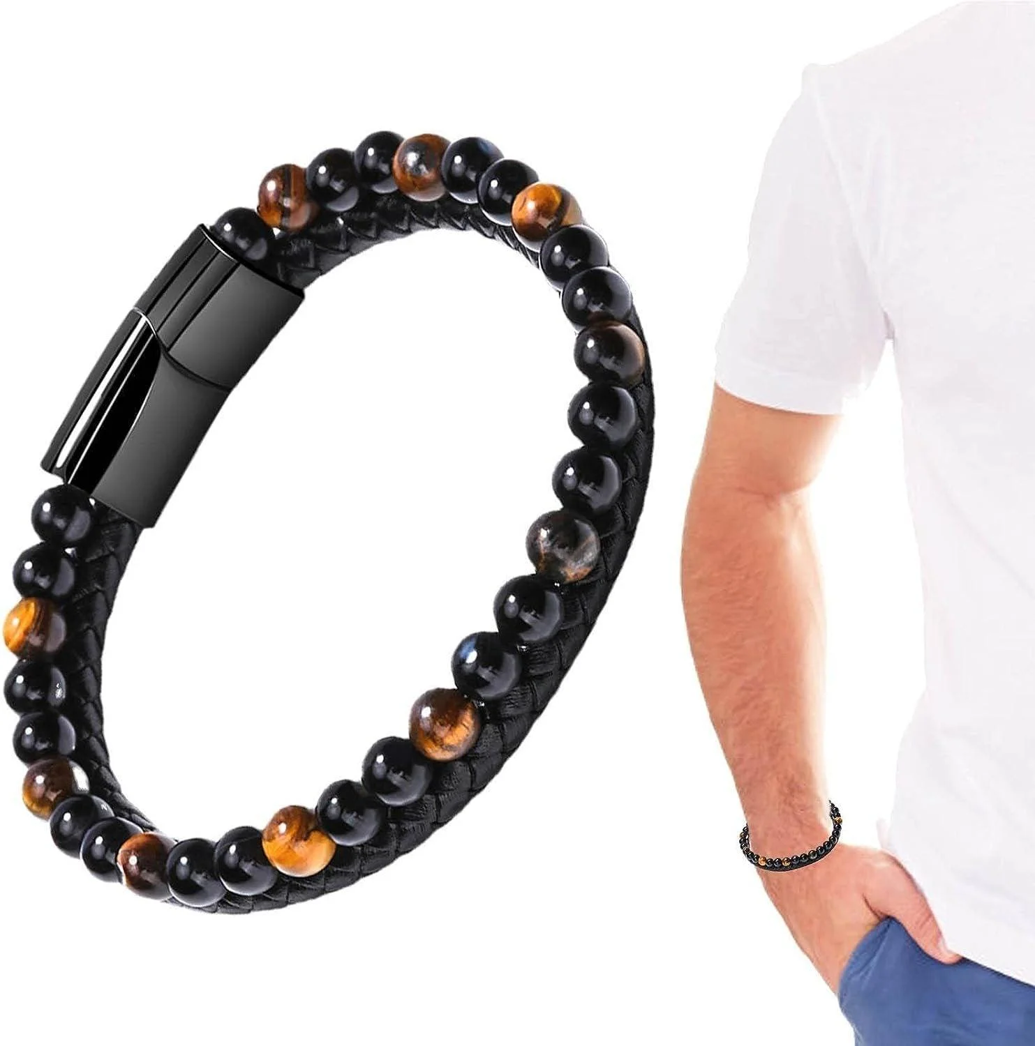 Embrace the power of positivity with our Men's Cowhide Rope Bracelet, featuring Tiger Eye Natural Stone.