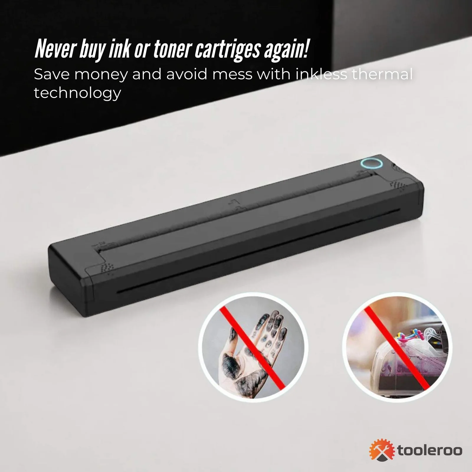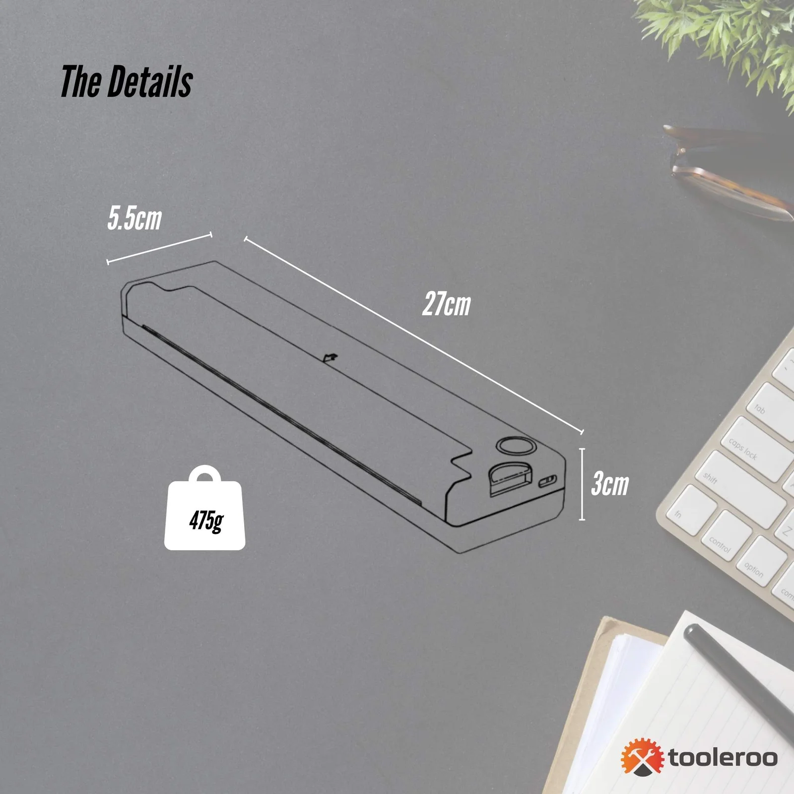 Tooleroo Portable A4 Thermal Printer and Paper Kit - a compact, lightweight and ready-to-use solution for fast on-the-go printing. With simple Bluetooth connectivity and no ink or toner needed, it’s perfect for business, travel, study and everyday use. Includes 10 sheets of A4 thermal paper.