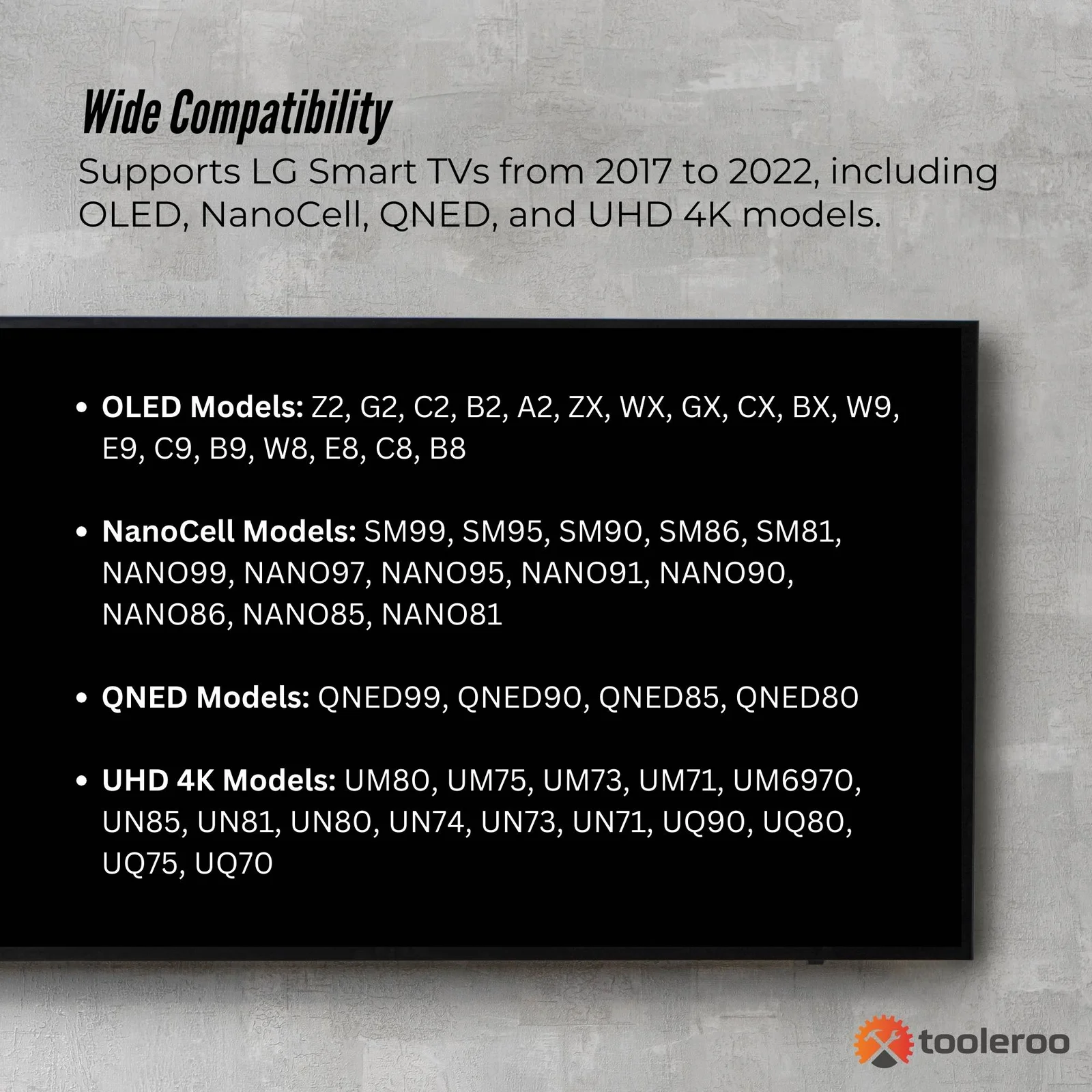 Wide Compatibility: Supports LG Smart TVs from 2017 to 2022, including OLED, NanoCell, QNED, and UHD 4K models.