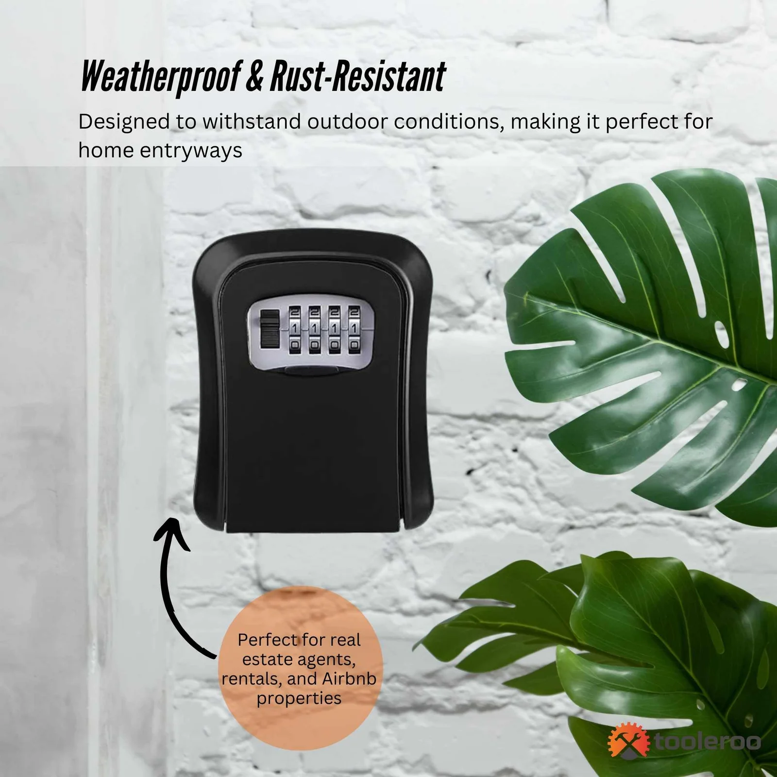 The Tooleroo Wall Mount Key Lock Box – 4-Digit Combination Safe offers secure and convenient key storage with a 10,000-code combination for maximum security. Built with a durable aluminium alloy and an anti-pry design, it ensures reliable protection. Its compact size makes it perfect for homes, offices, rentals, or Airbnb use. Easy to reset after each use. Keep your keys safe and accessible with this heavy-duty, weather-resistant key storage solution.