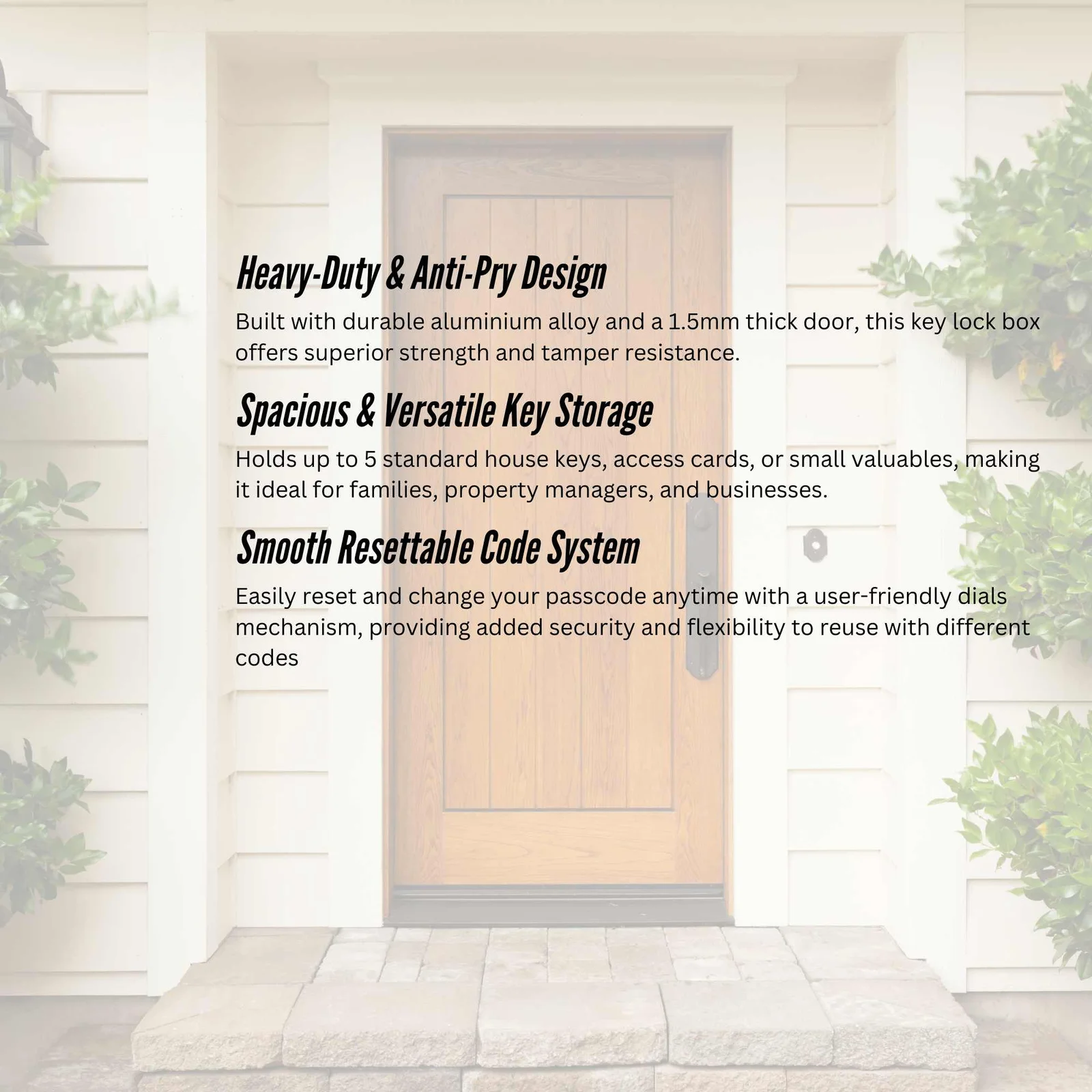 - Heavy-Duty and Anti-Pry Design – Built with durable aluminium alloy and a 1.5mm thick door, this key lock box offers superior strength and tamper resistance.