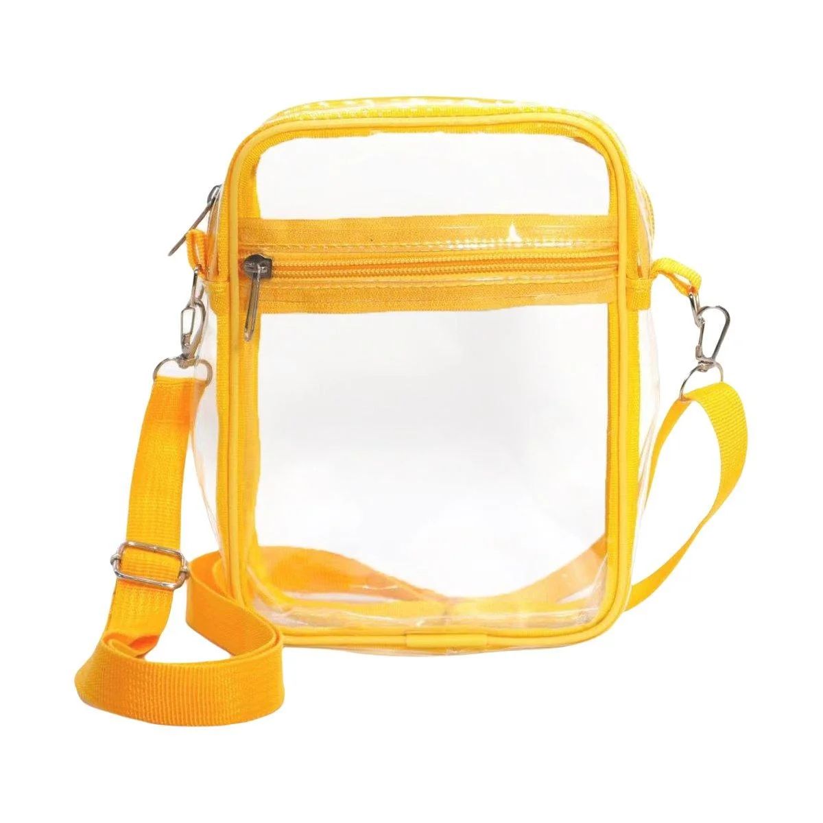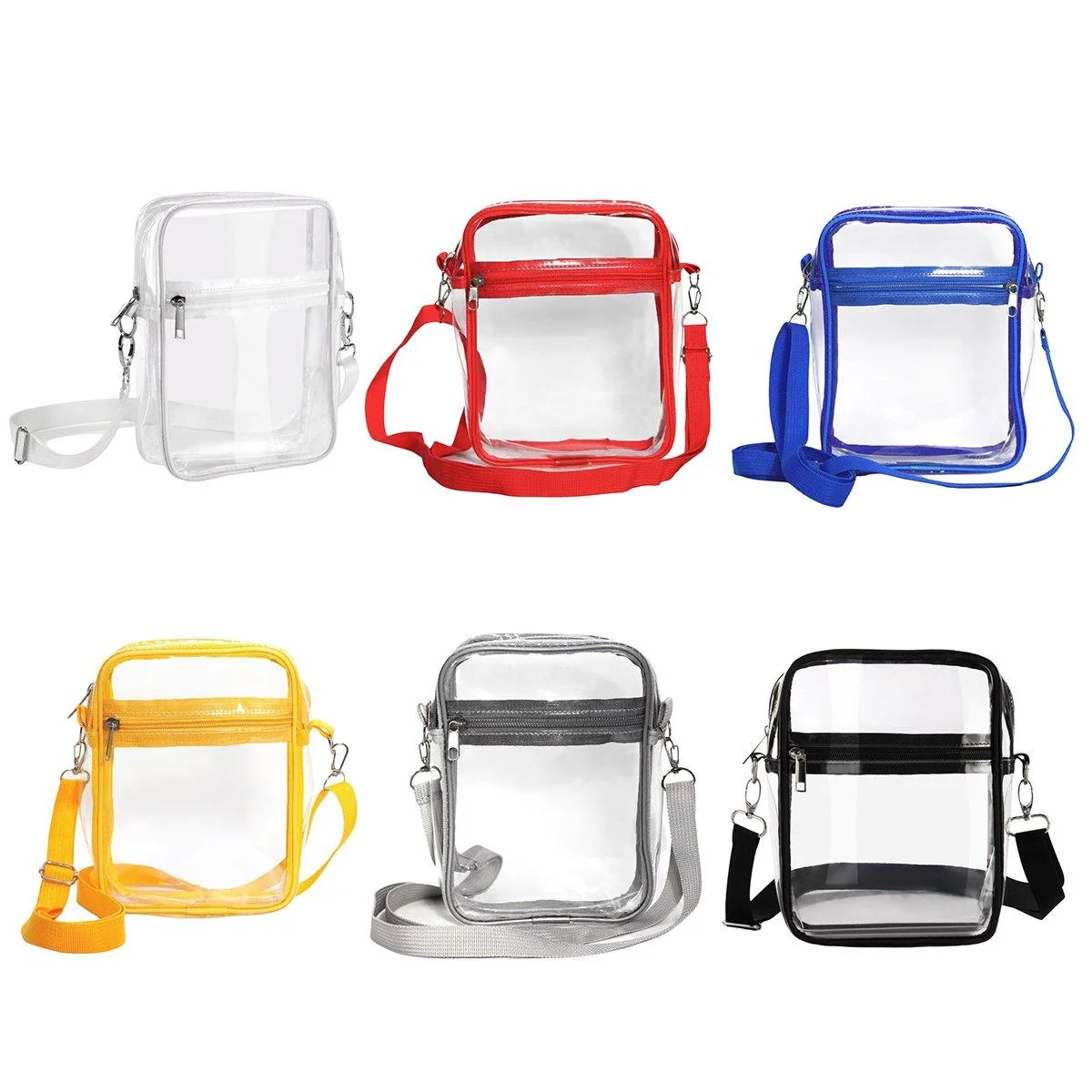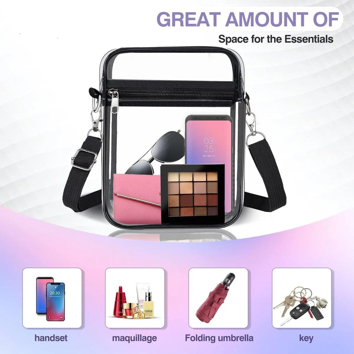 This transparent crossbody bag is the ideal companion for events with security regulations, such as concerts and stadiums. Made from durable PVC, it offers a spacious interior for your essentials while ensuring compliance with venue requirements. Featuring an adjustable shoulder strap and a sturdy zipper closure, this bag is both secure and convenient. Its versatile design allows it to be worn as a crossbody or shoulder bag, making it suitable for both men and women. Available in a variety of colours, this bag blends functionality with modern style.